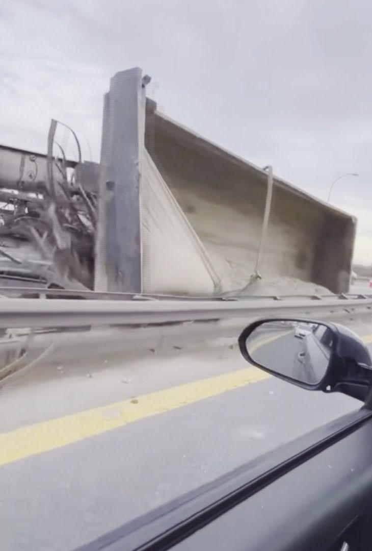Derya EVREN KORKMAZ-Emir Efe BENLİOĞLU/İSTANBUL, (DHA)- BÜYÜKÇEKMECE TEM Otoyolu'nda şoförünün direksiyon hakimiyetini kaybettiği hafriyat kamyonu önce seyir halindeki otomobile çarptı, ardından devrildi. Trafik yoğunluğunun oluştuğu kazada yaralanan kimse olmadı.