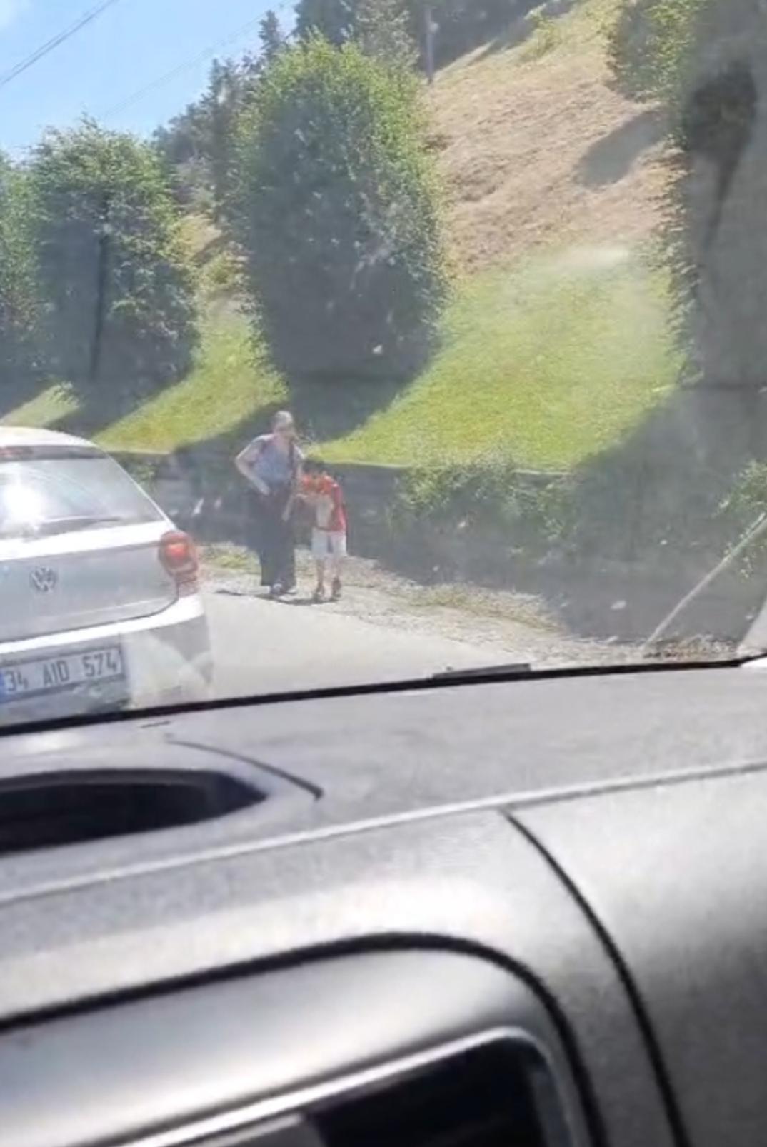 Olay, dün öğle saatlerine Metris bağlantı yolu Bayrampaşa sapağında meydana geldi. Edinilen bilgiye göre; aynı istikamette seyir halinde olan minibüs şoförü ve taksi şoförü arasında yol tartışması çıktı. Tartışmanın büyümesiyle minibüs şoförü taksinin önünü keserek aracından indi. Bu sırada taksideki kadın ve oğlu korkarak araçtan inip, uzaklaştı. Minibüs şoförünün hakaretler ederek saldırdığı taksiden inen müşteriler olay yerinden uzaklaşırken o anlar başka bir sürücünün cep telefonu kamerasıyla kaydedildi. (DHA)