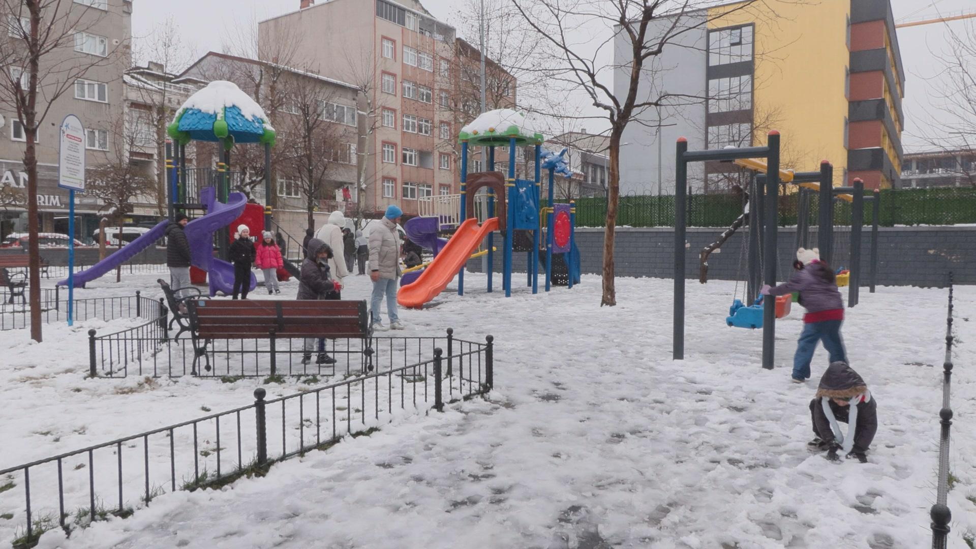 İstanbul'da aralıklarla devam eden kar yağışı dün gece itibariyle etkisini arttırdı. Bazı ilçelerde kar kalınlığı kısa sürede artarken, parklar, bahçeler ve sokaklar beyaz örtüyle kaplandı. Yarıyıl tatilinde olan çocuklar kar yağışını fırsat bilerek sokaklara çıktı.