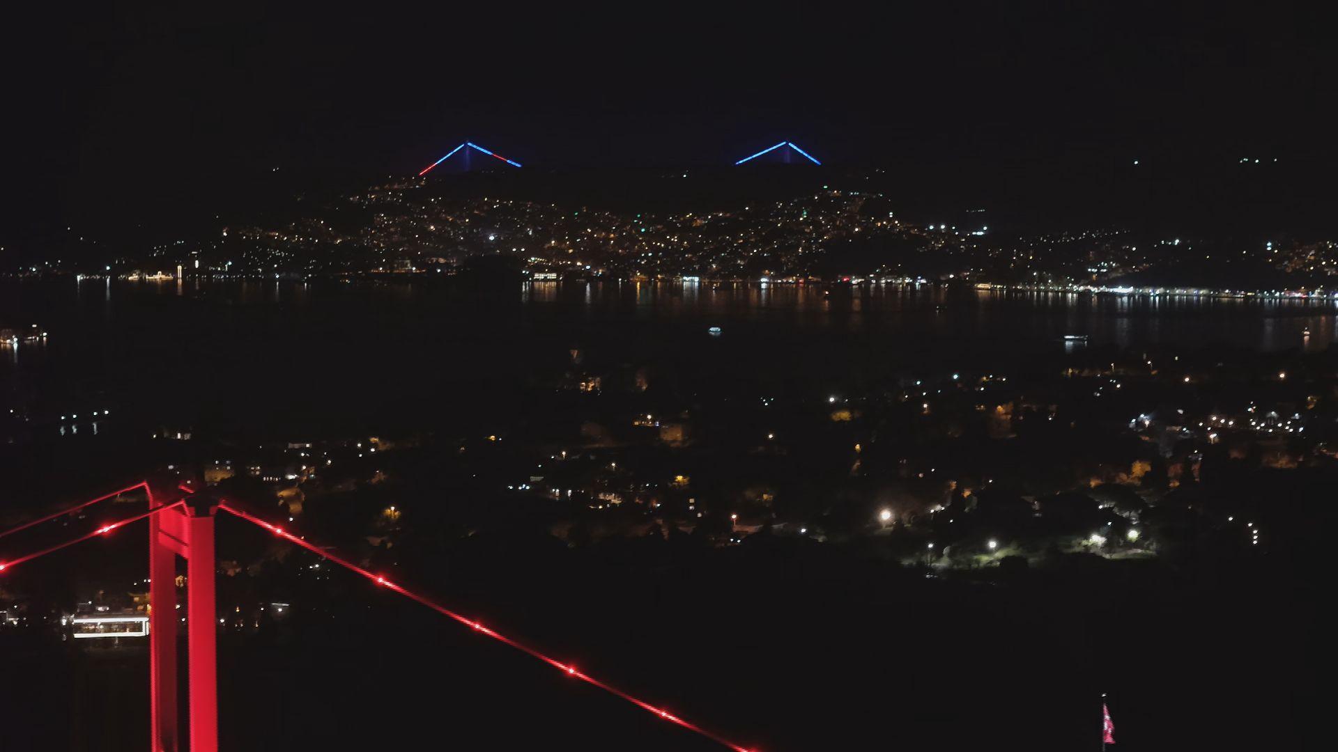 Dünyada her yıl 2 Nisan'da gerçekleştirilen 'Dünya Otizm Farkındalık Günü' kapsamında Fatih Sultan Mehmet Köprüsü, Galata Kulesi ve Sabiha Gökçen Havalimanı Hava Trafik Kontrol Kulesi otizm hastalığını temsilen mavi ve kırmızı renklerle ışıklandırıldı. Gerçekleştirilen ışıklandırma etkinliği dronla havadan görüntülendi. (DHA)