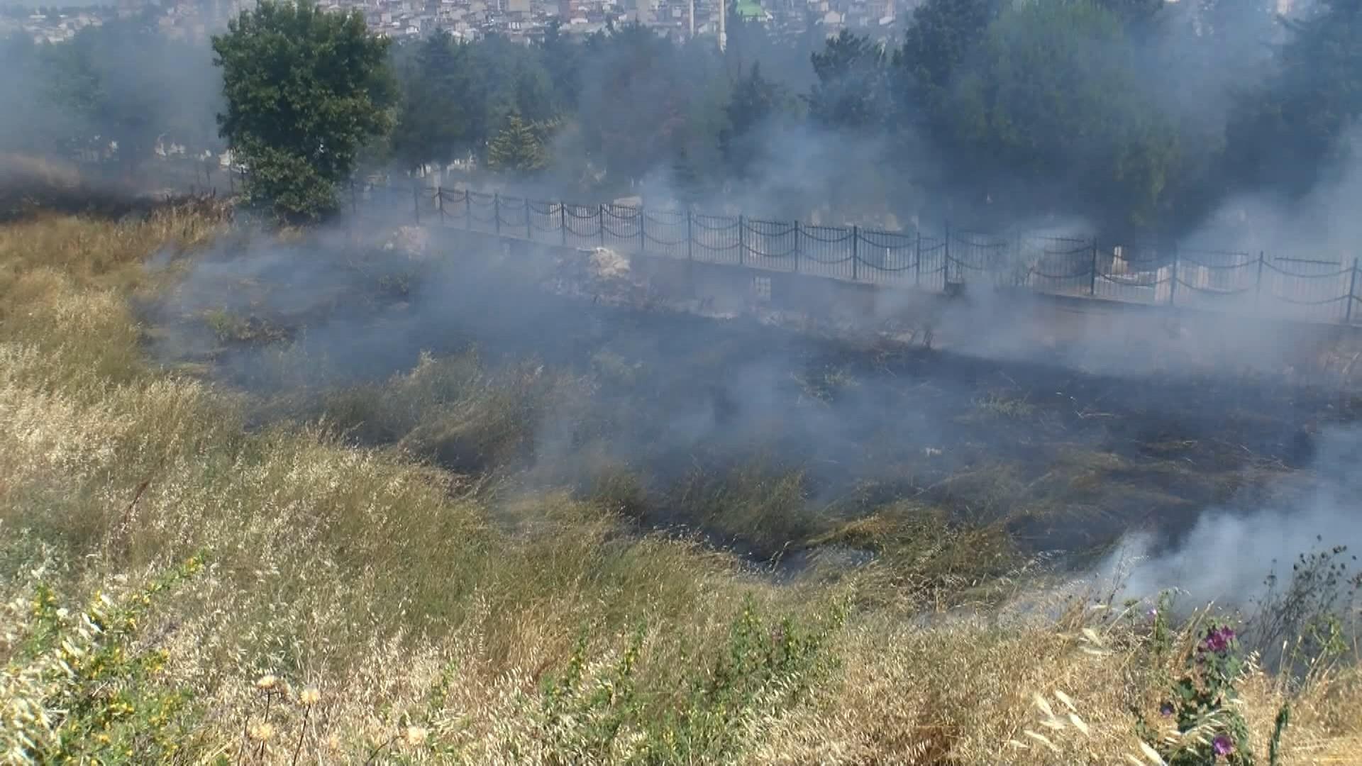 Yangın, saat 14.40 sıralarında Kanarya Mahallesi'ndeki otluk alanda çıktı. Rüzgarın etkisiyle kısa sürede yayılan alevleri görenler itfaiye ekiplerine haber verdi. İhbar üzerine olay yerine gelen itfaiye ekipleri, yangını yan tarafta bulunan mezarlığa sıçramadan söndürdü. (DHA)