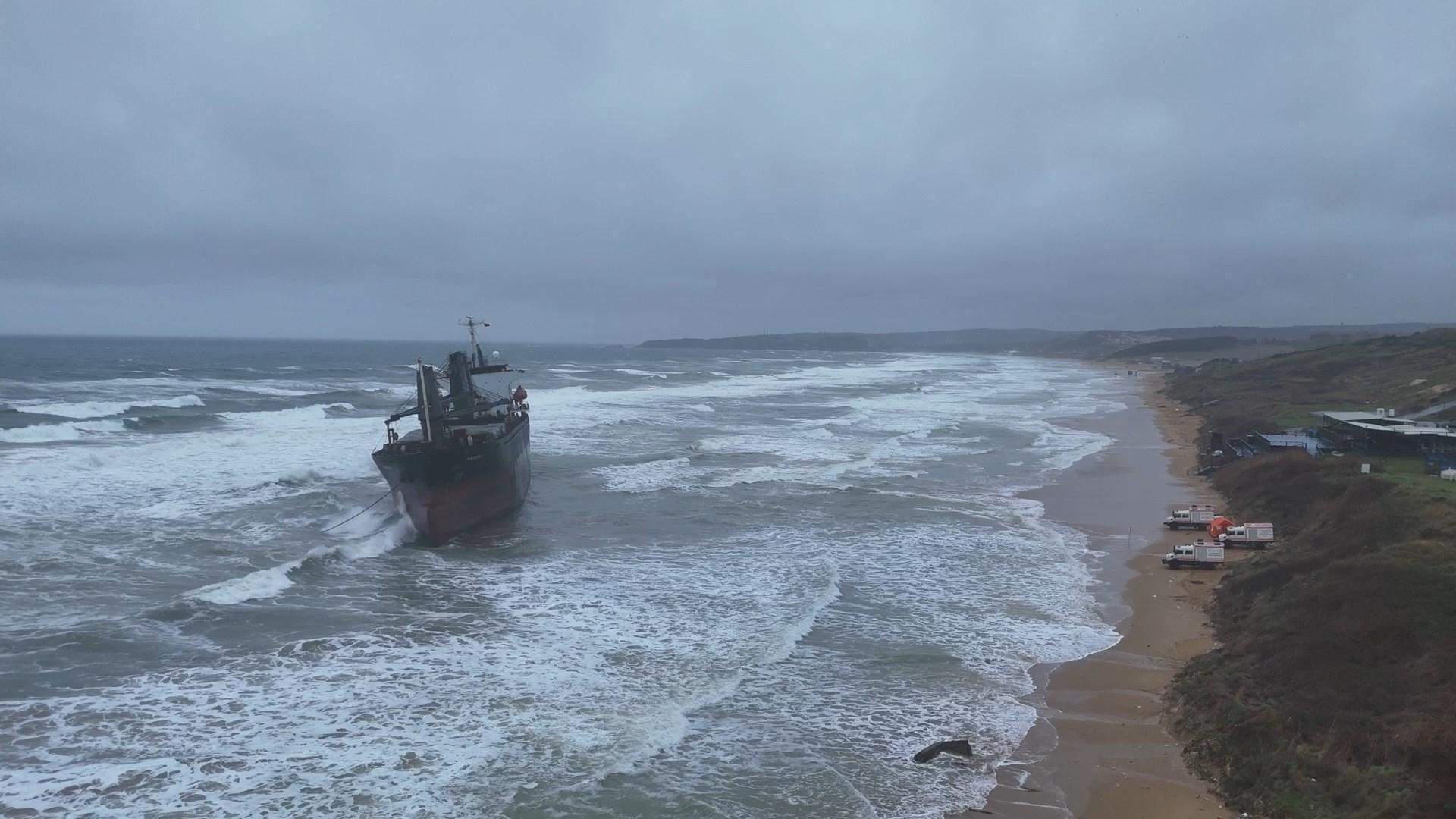Doğan Can CESUR / İSTANBUL, (DHA)- Sarıyer, Kısırkaya açıklarında karaya oturan 100 metrelik Komor Adaları bayraklı kargo gemisini havadan görüntülendi.