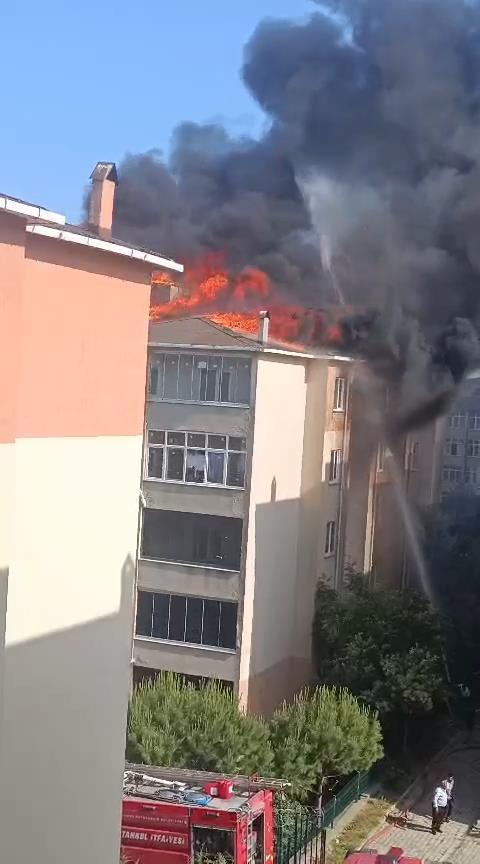 İstanbul - Silivri'de 5 katlı binanın çatısında yangın-1