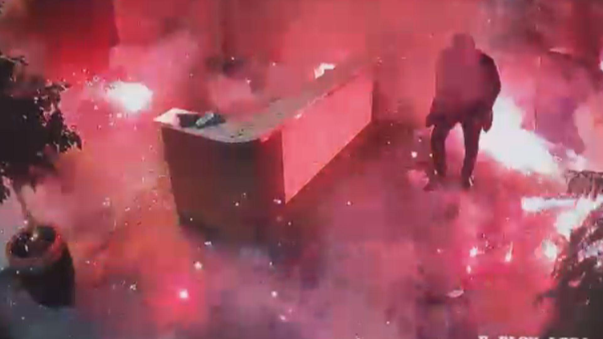 Görüntülerde, danışma noktasına bırakılan kargo paketinin bir kişi tarafından açılmaya çalıştığı sırada patlaması ve çevredeki kişilerin kaçtığı anlar yer aldı. (DHA)
