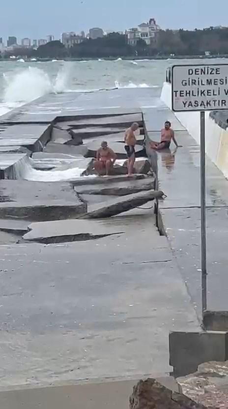 İstanbul- Kadıköy’de dev dalgaların çarptığı 3 yüzücü kayalıklara düştü; bacakları kırıldı
