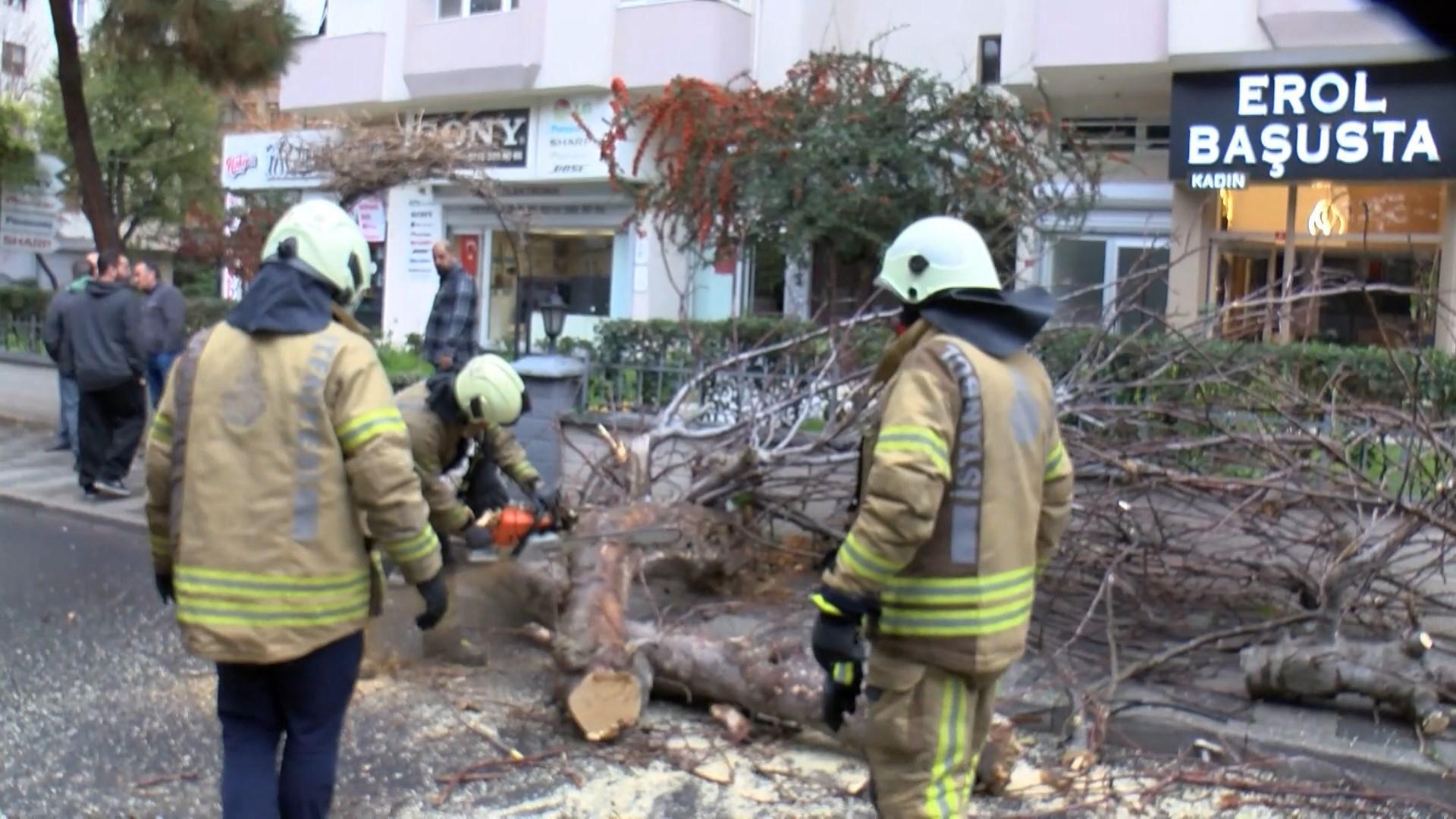 İstanbul- Kadıköy'de seyir halindeki cipin üstüne ağaç devrildi