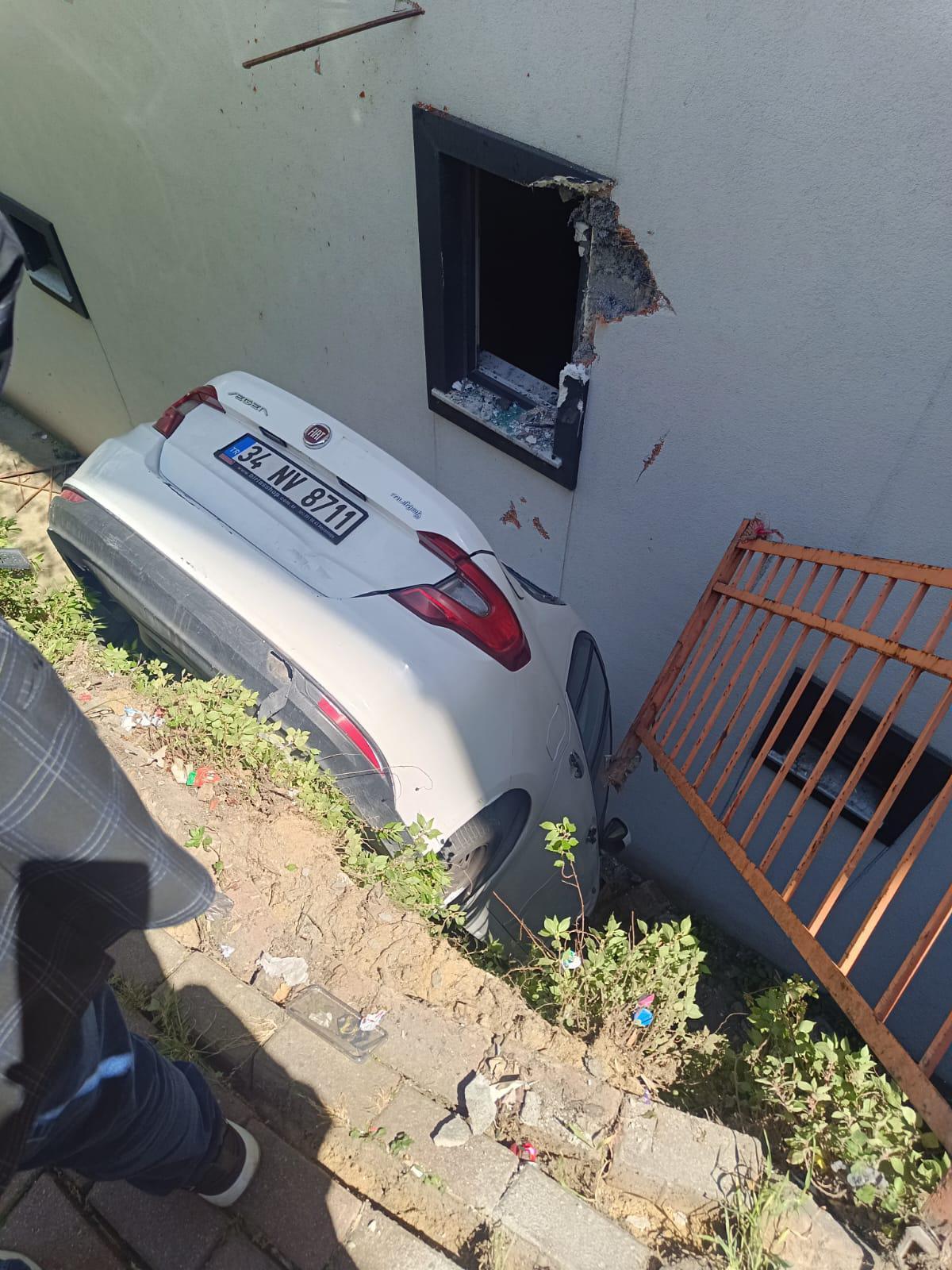 İstanbul - Kağıthane’de fren yerine gaza basan sürücünün çarptığı araç bina boşluğuna düştü