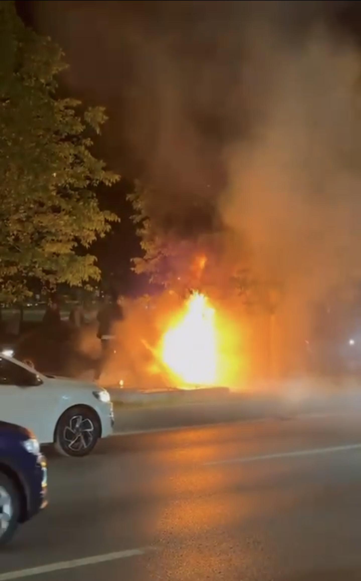 Kaza, saat 22.45 sıralarında Kartal Sahil Yolu Turgut Özal Bulvarı'nda meydana geldi. Seyir halindeki motosiklet, aynı istikamette giden otomobil ile çarpıştı. Kazada, devrilen motosiklet alev alırken, çevredekiler durumu itfaiyeye bildirdi. Bu sırada bazı vatandaşlar, yangın tüpleriyle alevlere müdahale etmeye çalıştı. Olay yerine gelen itfaiye ekipleri, yangına müdahale ederek kısa sürede söndürdü. Yangın sonrası motosiklet kullanılamaz hale gelirken, o anlar çevredekilerin cep telefonu kamerasıyla görüntülendi. (DHA)