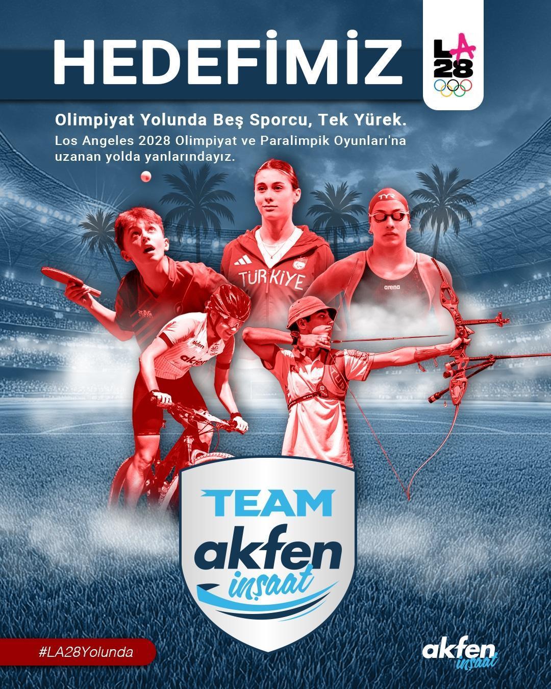 Team Akfen İnşaat kapsamında okçulukta Berkay Akkoyun, bisiklette Ekin Ereke, yüzmede Meriç Uygun, para atletizmde Aysel Önder ve masa tenisinde Görkem Öçal'ın destekleneceği ifade edildi. Programla genç sporcuların olimpiyat hedeflerine uzanan uzun soluklu yolculuklarında yanlarında durmak, onların gelişim süreçlerine katkı sağlamak ve başarılarını sürdürülebilir kılmak amaçlanıyor.