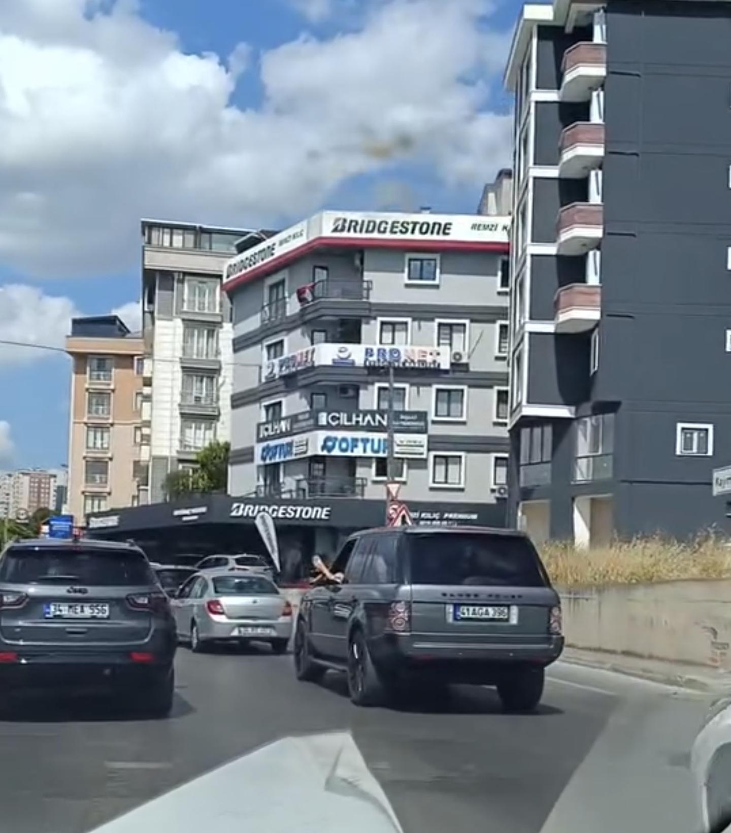 Mert ORDU/İSTANBUL, (DHA) - MALTEPE'de cip sürücüsünün seyir halindeyken ayağını camdan çıkararak trafikte ilerlediği anlar cep telefonu kamerasıyla kaydedildi.