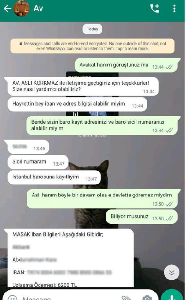 Korkmaz, “Bana 5 kişi ulaştı ve e-maille teyit rica ettiler ben de her birine benim uzlaştırmacı belgem yok. İnanmayın. Adımla para isteyen kişilere güvenerek ödeme yapmayın dedim. Hesap numarasına kayıtlı isim zaten bambaşka birinin adı. Bir avukat size bambaşka birinin adını vermez. Bir de üzerine Mali Suçları Araştırma Kurulu (MASAK) bilgileri yazmış. Sanki Mali Suçlar Bürosuna ödeme yapıyormuşsunuz gibi bir gösterim yapıyor. 6 bin 200 liranızı verin ceza dosyanızdan kurtaralım diyorlar. Ceza diyerek insanların üzerinde de daha çok gerginlik yaratıyorlar. Onlar da bunu kullanıyorlar" diye konuştu.