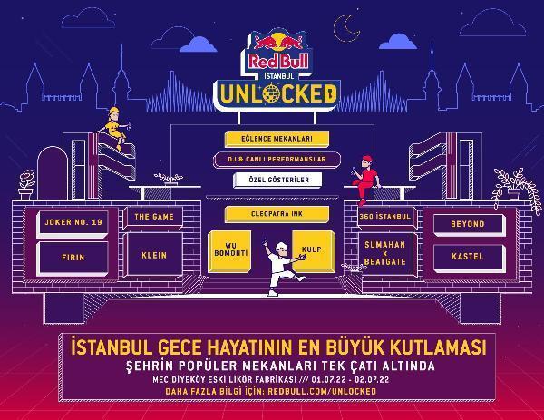 İSTANBUL, (DHA) - İstanbul’un popüler mekanlarını tek çatı altında toplayarak, 2 gün boyunca devam edecek Red Bull İstanbul Unlocked için geri sayım başladı. Eğlence, müzik ve lezzeti odağına alarak 1-2 Temmuz tarihlerinde yapılacak Red Bull İstanbul Unlocked’da Mecidiyeköy Eski Likör Fabrikası’nda aynı anda 10’dan fazla mekan ve 60’ı aşkın sanatçı yer alacak.