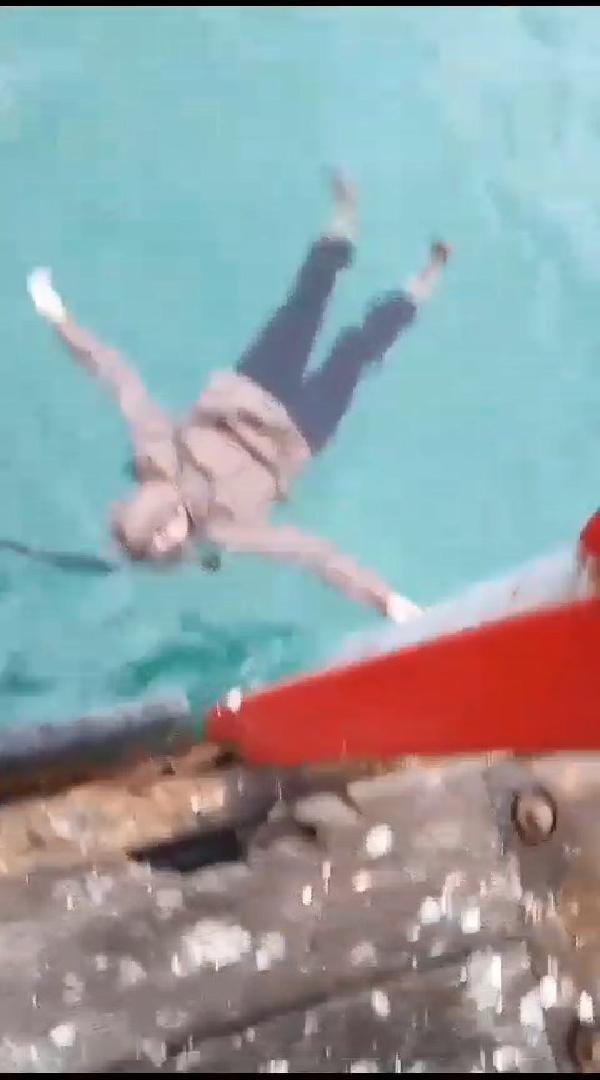 Yaşanan olay, vatandaşlar tarafından cep telefonu kameraları ile kaydedildi. Görüntülerde, kadının denizde sırt üstü yattığı ve akaryakıt istasyonu görevlisinin halat uzatmaya çalıştığı görülüyor. Halatı tutmayan kadının bu sırada kollarını hareket ettirerek su üstünde kaldığı görülüyor. Görüntülerde ayrıca, vatandaşların Vedat Demirel'in ayaklarından tutarak kadını kurtarması için sarkıttığı da görülüyor.