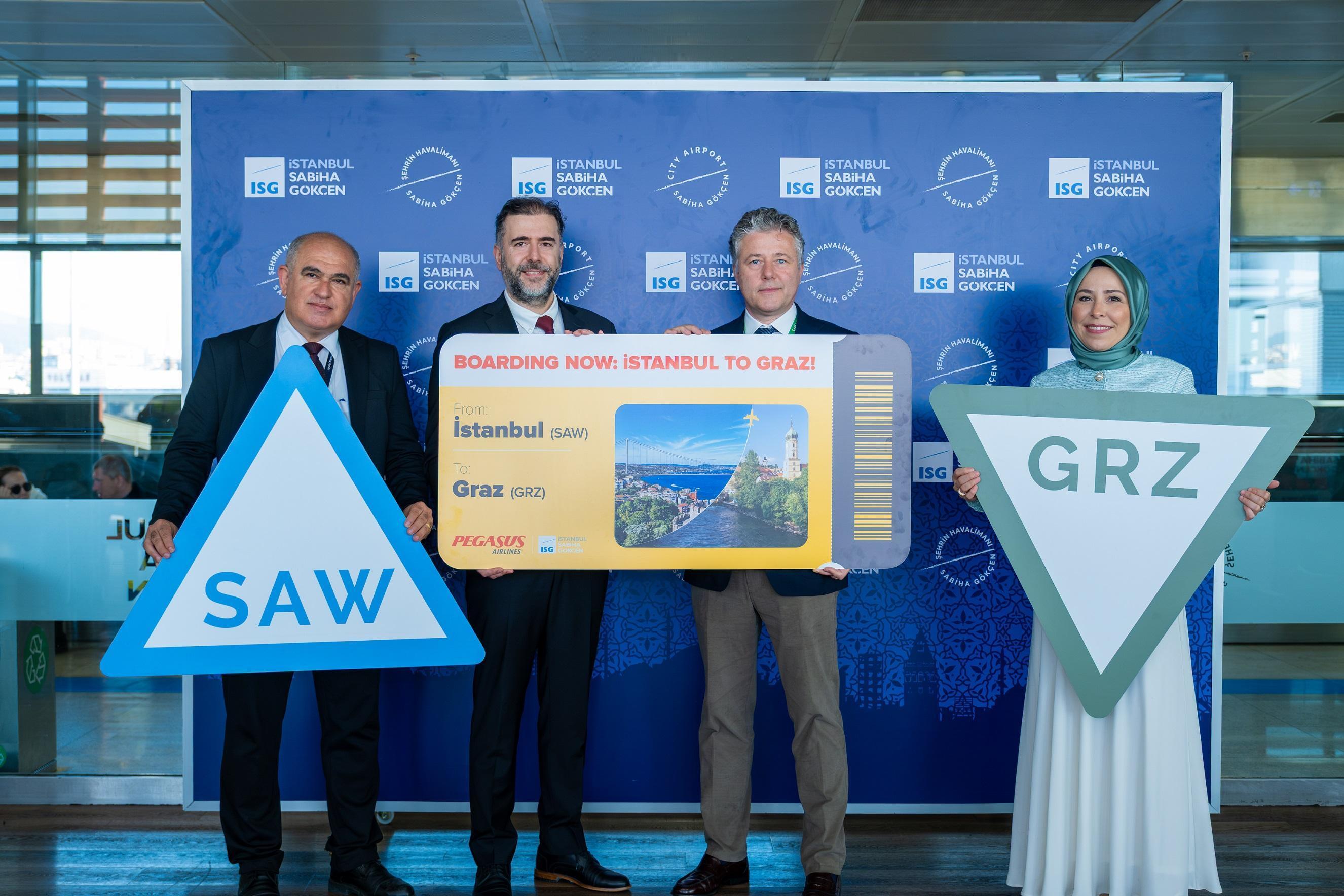 Yolcu sayısı bakımından Avrupa'nın en yoğun 8'inci havalimanı olan İstanbul Sabiha Gökçen (ISG) Uluslararası Havalimanı, Avrupa’nın önemli merkezlerini İstanbul’a doğrudan bağlamaya devam ediyor. Sabiha Gökçen Havalimanı’ndan Graz şehrine uçuş başlatan Pegasus Havayolları salı, cuma ve pazar olmak üzere haftada 3 frekans gerçekleştirilecek. Havayolu şirketi ilk uçuşunu bugün gerçekleştirdi. Uçuş öncesi havalimanında bir tören düzenlendi.