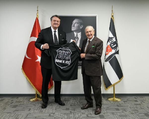 İSTANBUL,(DHA)- Beşiktaş Kulübü'nün yaşayan en eski üyesi, Koç Holding Onursal Başkanı Rahmi Koç, Siyah-beyazlıların 35'inci Başkanı Hasan Arat'ı ziyaret etti.