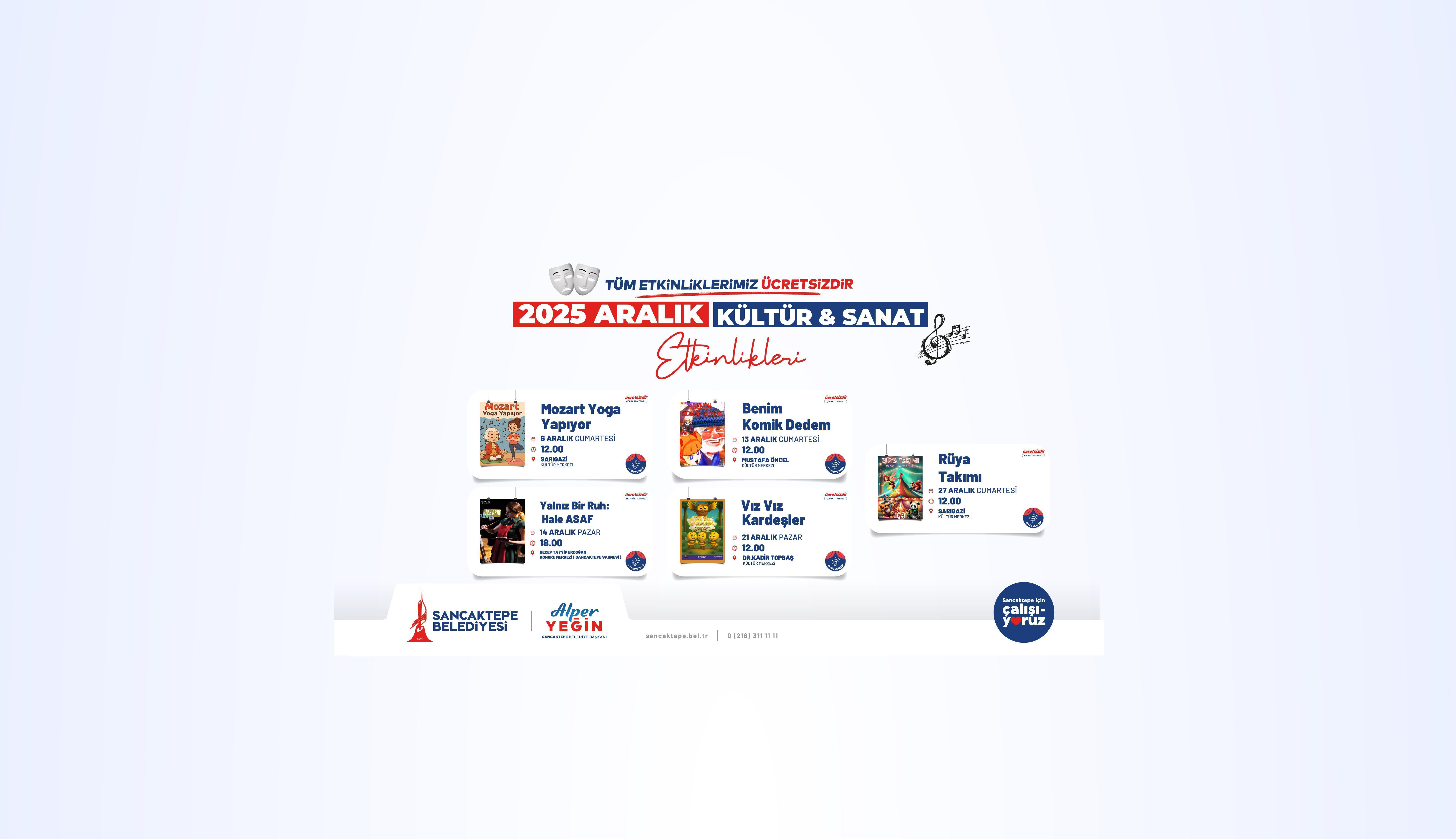 “Sancaktepe’de her yaştan vatandaşımızın kültür ve sanata erişimini kolaylaştırmak için çalışmalarımızı sürdürüyoruz. Aralık ayında da dopdolu bir programla hem çocuklarımızı hem ailelerimizi kültürle buluşturacağız. Tüm komşularımızı bu etkinliklere davet ediyorum.”