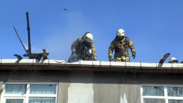 Sancaktepe'de izolasyon çalışmasında çatı yandı