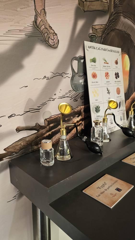 Sergide Şanlıurfa’nın Halfeti ilçesinde yetişen siyah gül, Mezopotamya’da bulunan çivi yazılı bir tablette yer alan ilk parfüm formülü olan Tapputi, Eski Mısır’da bulunan ilk parfüm formülü Kyphi ve Mezopotamya’nın kutsal merkezi Nippur’dan esinlenilerek üretilen Nippur isimli parfüm de yer alıyor.