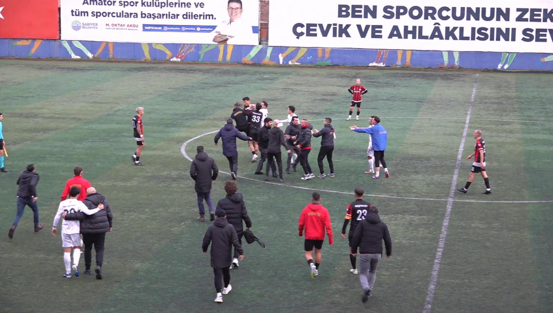 İstanbul - Sarıyer’de amatör lig maçı sonrası stadyum karıştı; futbolcularla taraftarlar birbirine girdi