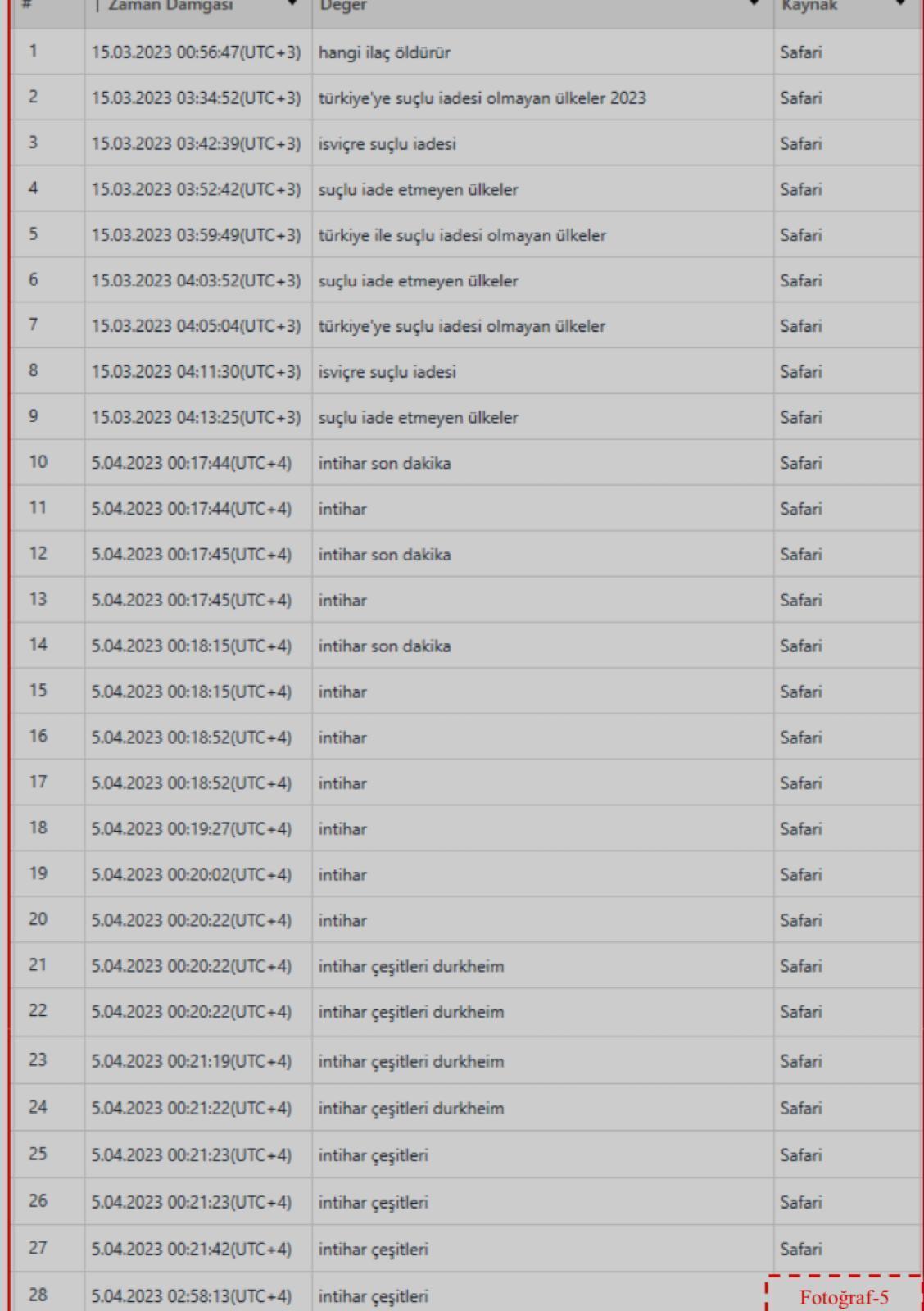 Özden ATİK / İSTANBUL, (DHA)-ARALARINDA Arda Turan, Emre Belözoğlu, Fernando Muslera ve Selçuk İnan gibi ünlü futbolcuların da 21 kişiyi dolandırdıkları iddiasıyla eski banka müdürü Seçil Erzan'ın da arasında bulunduğu 7 sanıklı dava dosyasına sanıkların telefonları ve dijital materyallerinin incelemelerine ilişkin yeni bilirkişi raporu girdi. Erzan'ın telefonunda internet üzerinden "Hangi ilaç öldürür", "Türkiye'ye suçlu iadesi olmayan ülkeler 2023", "İsviçre suçlu iadesi", "Suçlu iade etmeyen ülkeler", "intihar çeşitleri", "fare zehiri insanı kaç saatte öldürür", "nasıl intihar edilir" gibi aramalar yaptığı tespit edildi. Sanıklar Ali ve Atilla Yörük'ün ise yakın tarihte telefonlarını değiştirdikleri belirlendi.