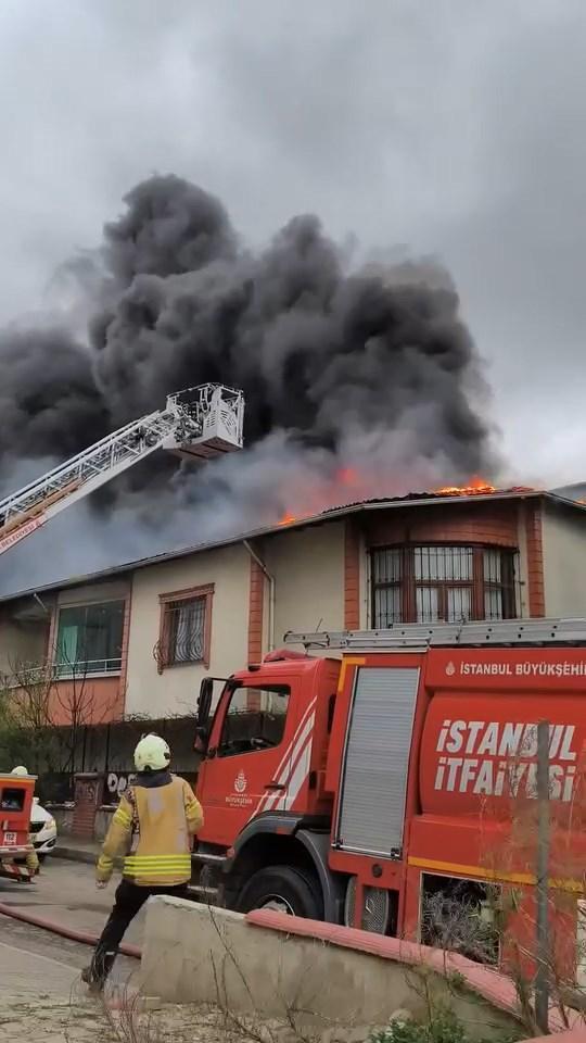 Sultanbeyli'de 2 katlı binanın çatısı alev alev yandı