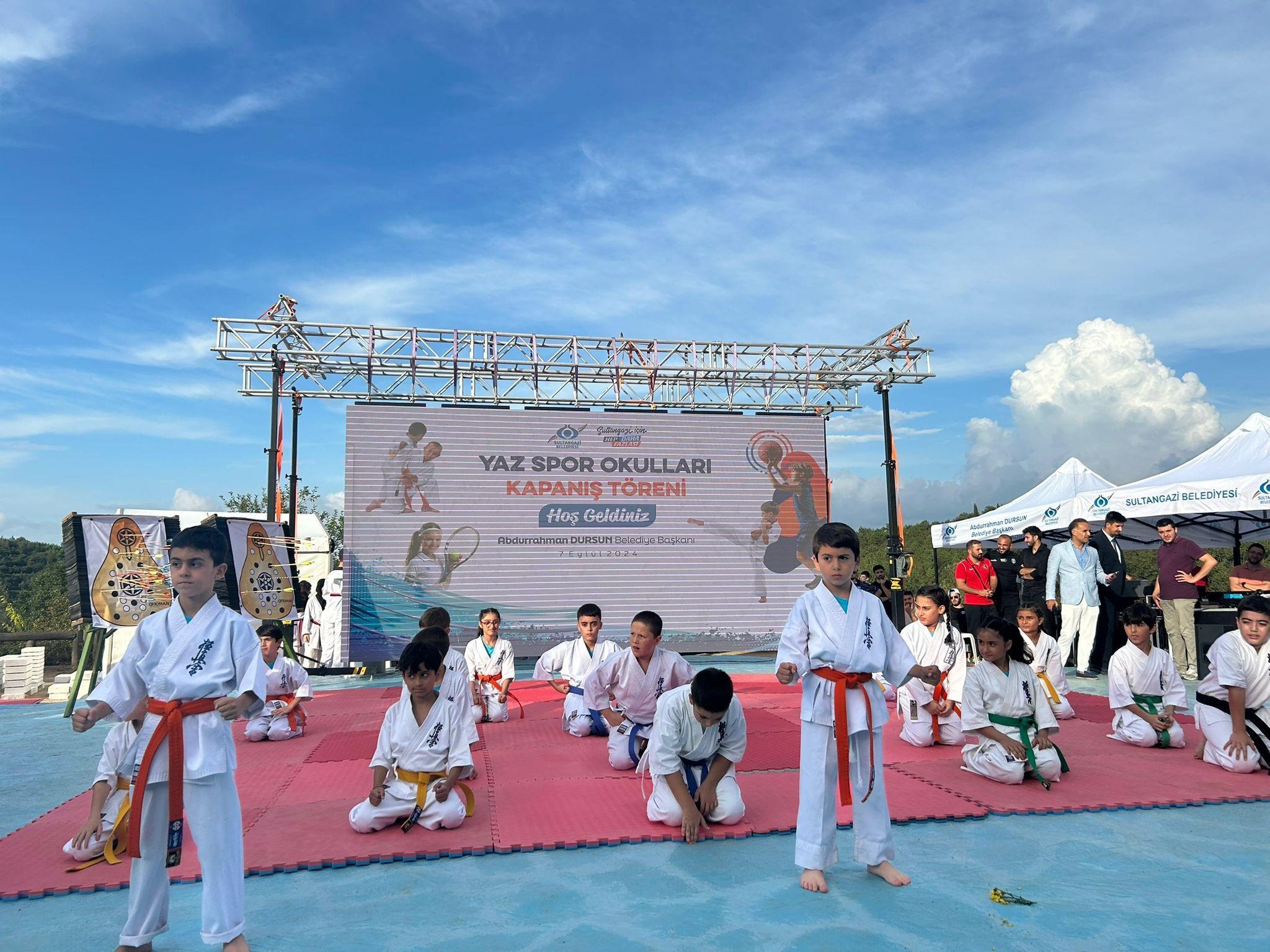 Yaz tatili süresince spor okulunda eğitim alan 6 bine yakın çocuk ve genç; kapanış töreninde performanslarını sergiledi. Sultangazi Belediyesi Yaz Spor Okulları'nda 7-18 yaş aralığındaki 6 bin öğrenci 17 farklı branşta uzman eğitmenler eşliğinde eğitim aldı. Dursun, Yaz Spor Okulları'nda başarılı olan öğrencilere sertifikalarını takdim etti.