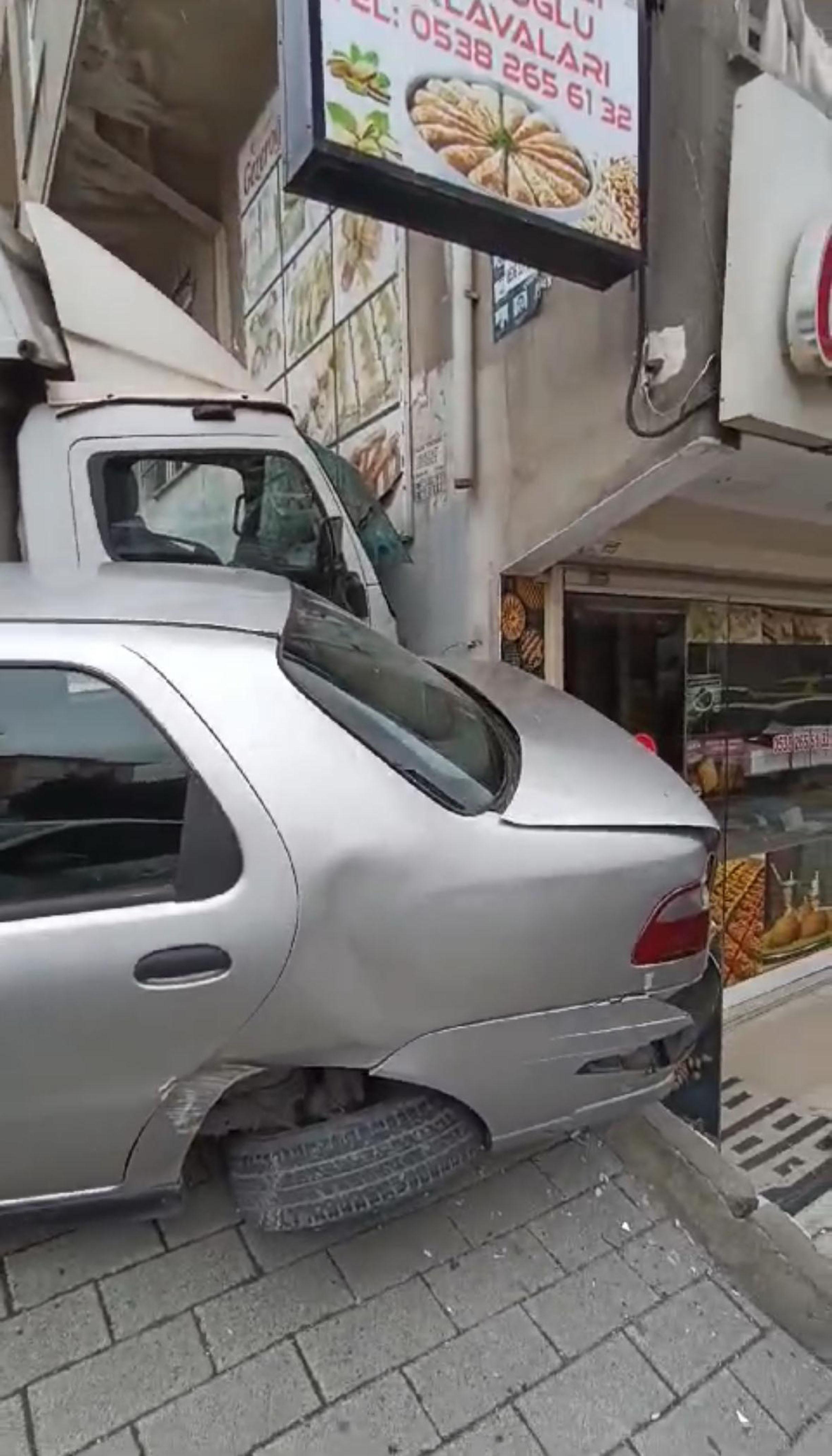Kaza, dün saat 11.00 sıralarında Esentepe Mahallesi'nde meydana geldi. Şoförünün içinde olmadığı kamyon bilinmeyen bir nedenle yokuş aşağı kaymaya başladı. Kamyon, park halindeki otomobile çarptıktan sonra o sırada kapalı olan baklavacıya girdi. Kaza nedeniyle kamyon ve otomobilde maddi zarar meydana gelirken baklavacının da duvarı yıkıldı. İhbar üzerine olay yerine gelen polis ekipleri kazayla ilgili tuttu. Kamyonun kayma sebebi araştırılırken kaza anı güvenlik kamerasına yansıdı. (DHA)