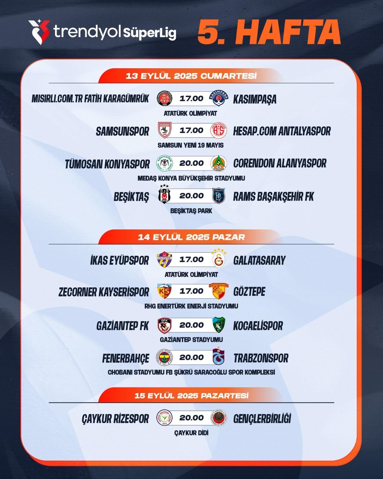 Süper Lig'de 5'inci ve 6'ncı hafta programları açıklandı