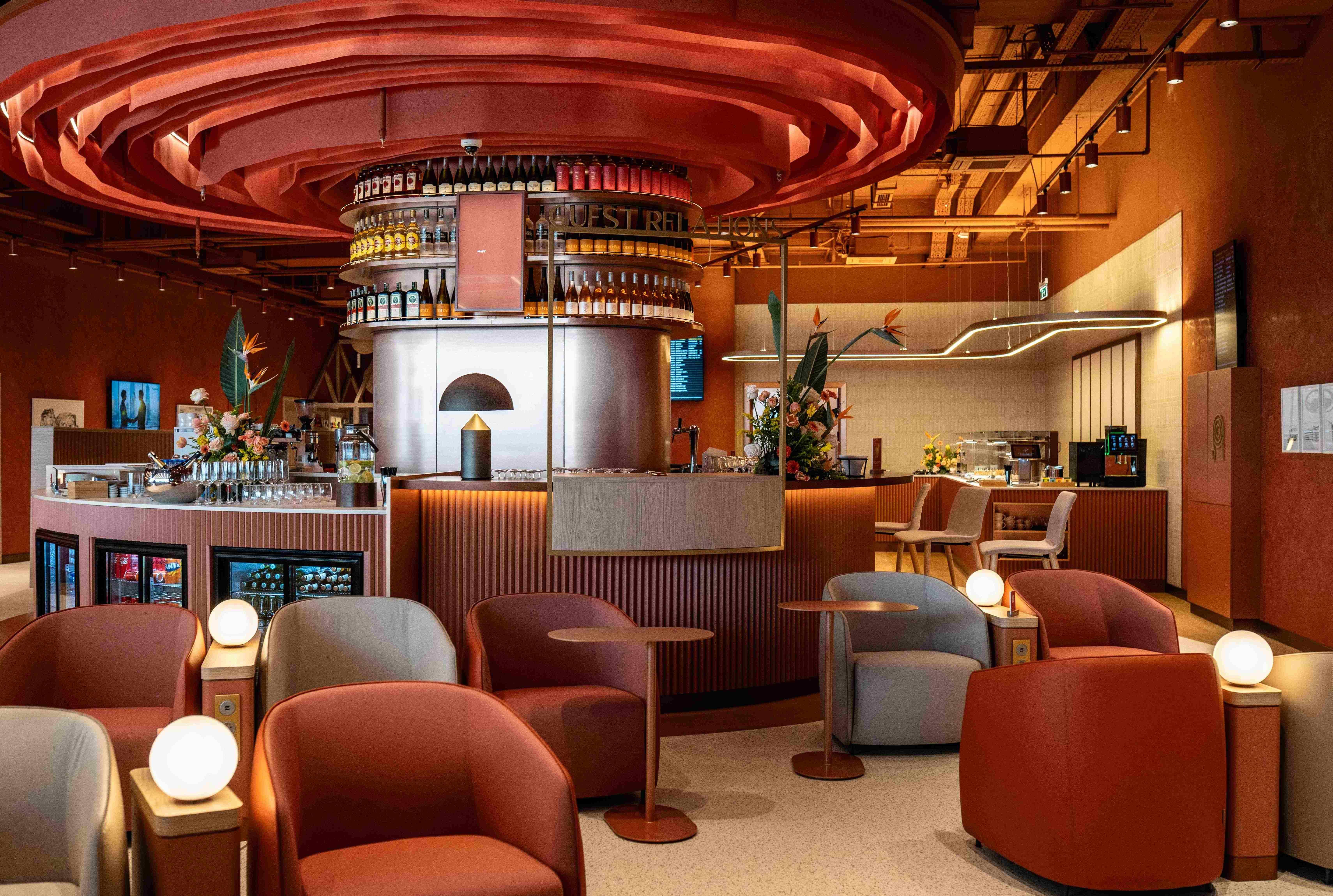 “Sofya Havalimanı’ndaki lounge, misafirlerin sosyal, üretken ve dinlenme ihtiyaçları arasında akıcı geçiş yapabildiği hibrit bir ortam olarak tasarlandı. Bar ve yaşam alanı, yeme-içme bölümü, çalışma alanları, çocuk alanı, dinlenme odası ve terasla çok katmanlı bir deneyim sunuyor.