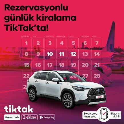 İstanbul’a özel sunduğu dakikalık ve günlük kiralama hizmetleri ile bilinen TikTak, otomobil kiralama sektörünün evrak teslimi gibi zorlayıcı adımlarını tamamen ortadan kaldırdıklarını açıklayan mobil uygulama, rezervasyonlu günlük kiralama modeline geçtiğini bildirdi.