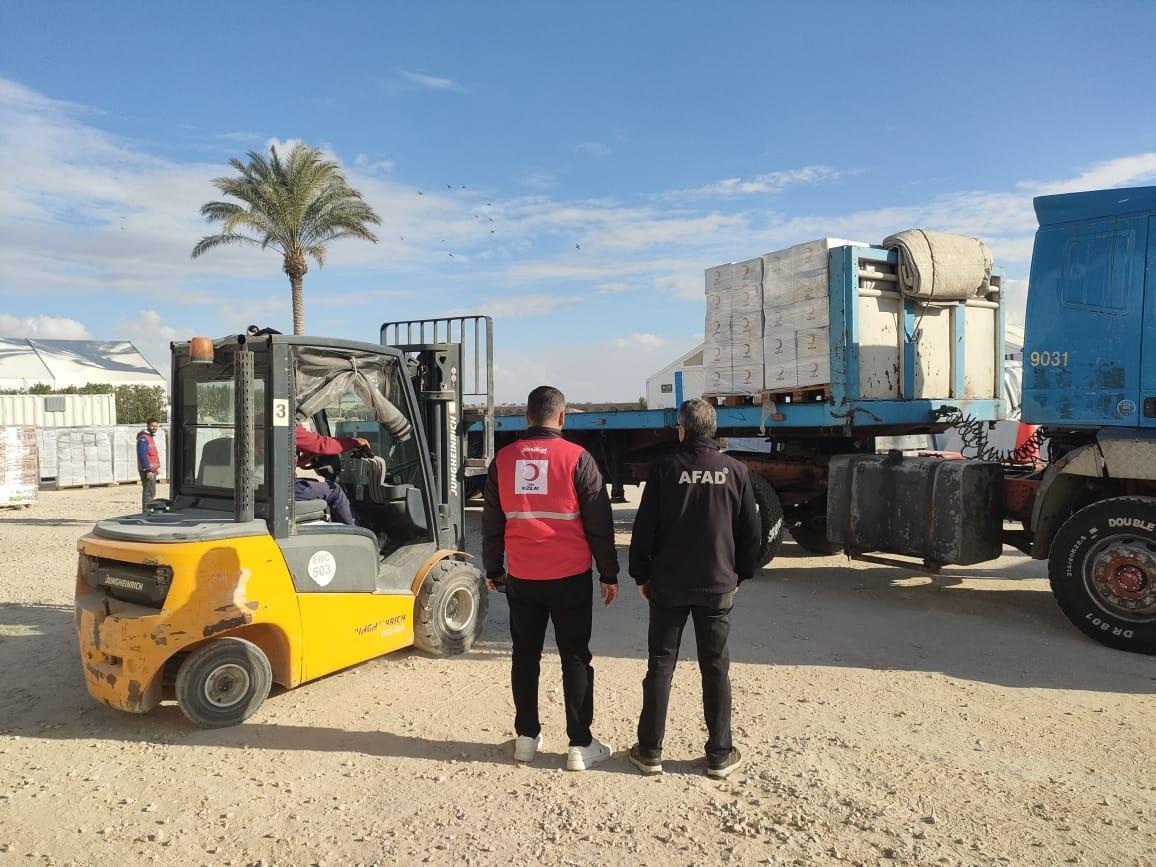 "Türk Kızılay, büyük bir yıkıma uğrayan Gazze'deki insani krizinin etkilerini hafifletmek için yoğun çaba gösteriyor. Bu kapsamda, Mısır Kızılayı iş birliğiyle Ariş'teki gümrüklü depoda Marin 2 gemisinden tahliye edilen yardım malzemelerinin tırlara yüklenmesi ve Gazze'ye geçişine başlandı. Şimdiye kadar 30'dan fazla yardım TIR'ı ile insani yardım malzemeleri Gazze'ye ulaştırılmak üzere yola çıkarıldı.