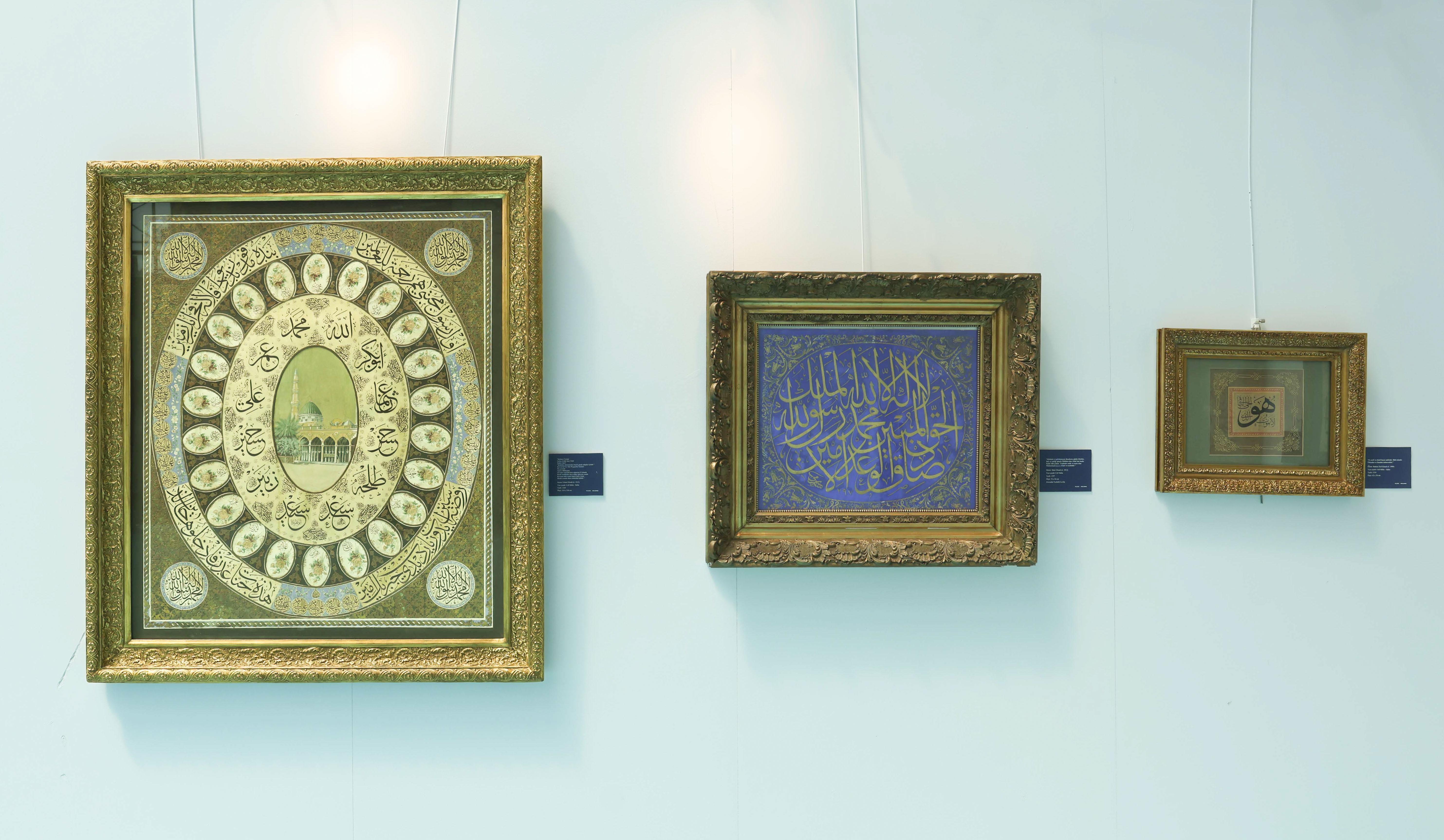 ‘Tarihin Akışında Meşhur Hattatlar’ sergisinde, Hafız Osman (1698), Sultan III. Ahmed (1736), Mahmud Celaleddin Efendi (1829), Sultan II. Mahmud (1839), Kazasker Mustafa İzzet Efendi (1876), Sami Efendi (1912), Hamid Aytaç (1982) ve Hasan Çelebi (2025) gibi üstatlar ile Ali Toy (1960), Mehmed Özçay (d. 1961) ve Ferhat Kurlu (1976) gibi hattatlarının eserleri yer alıyor.
