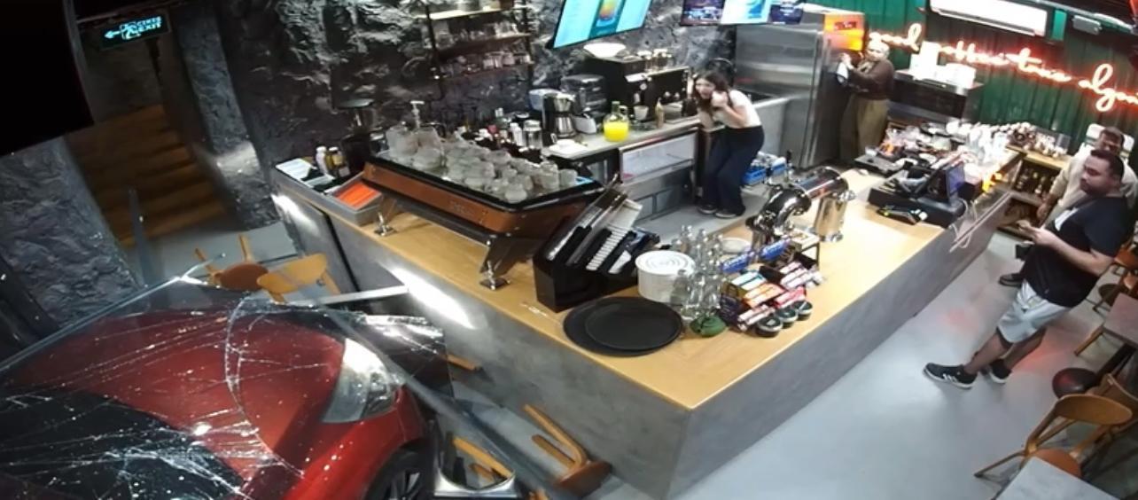Otomobilin kafeye girdiği anlar ise güvenlik kamerasına yansıdı. Görüntülerde, kafe çalışanlarının ve müşterilerinin üzerlerine gelen otomobili gördükleri anlarda büyük korku ve panik yaşadığı görüldü.