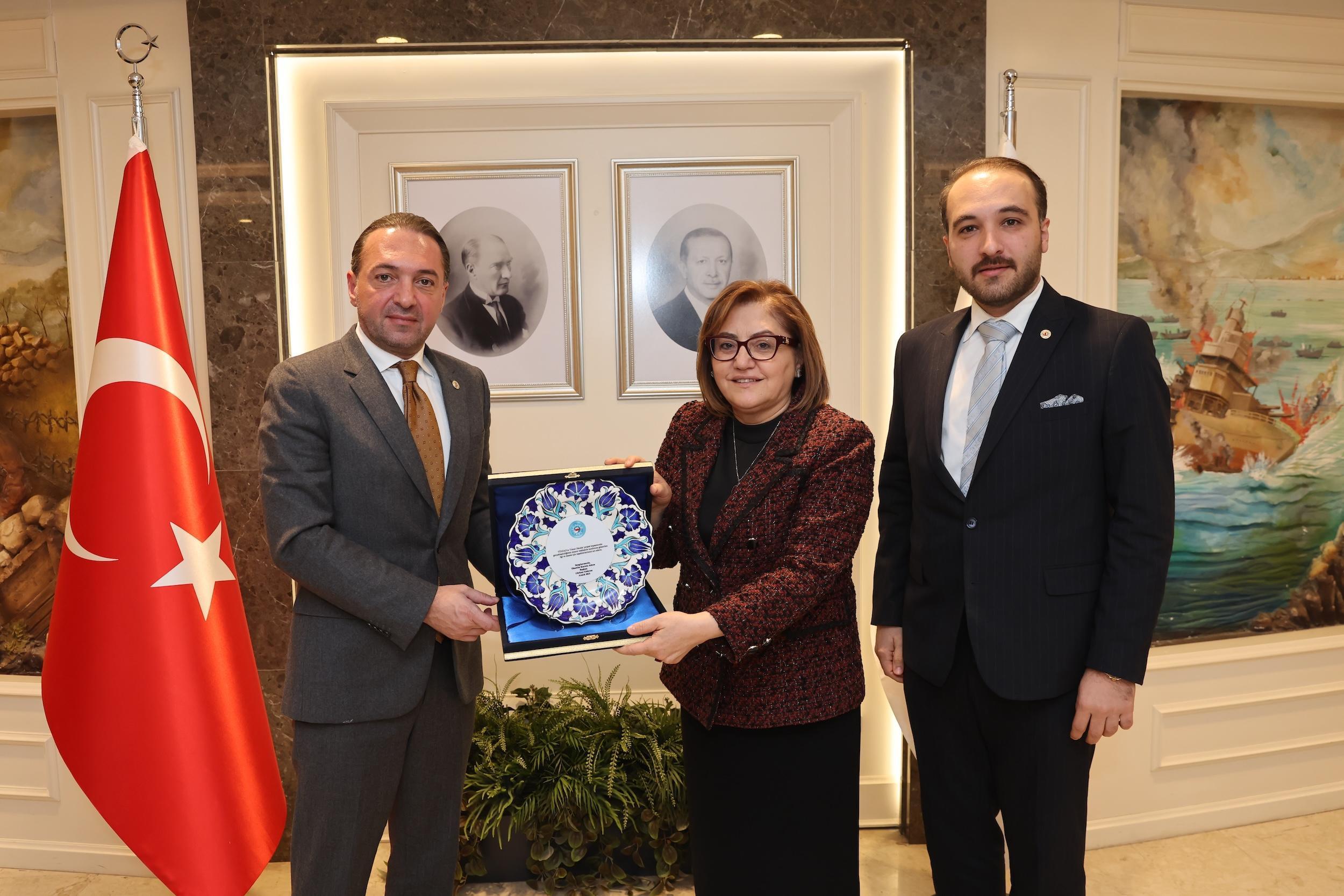 Daha sonra Gaziantep’e geçen TÜGİAD Heyeti, Gaziantep Valisi Kemal Çeber, Ticaret Odası Yönetim Kurulu Başkanı Mehmet Tuncay Yıldırım, TOBB Gaziantep Genç Girişimciler Kurulu Başkanı Abdulkadir Koçer’i ziyaret etti. Gaziantep Büyükşehir Belediye Başkanı Fatma Şahin ile Başkan Danışmanı ve İstasyon Gaziantep Koordinatörü Filiz Evran ile de bir araya gelen heyet, proje hakkında görüş alışverişinde bulundu. Ziyarette ayrıca, Gaziantep Büyükşehir Belediyesi ve İstasyon Gaziantep ile TÜGİAD’ın AB projeleri içerisinde ortak yer alma konusunda iş birliği ve TÜGİAD’ın çok güçlü olan Avrupa networkünden Gaziantep’in nasıl fayda sağlayacağı gibi konular ele alındı.
