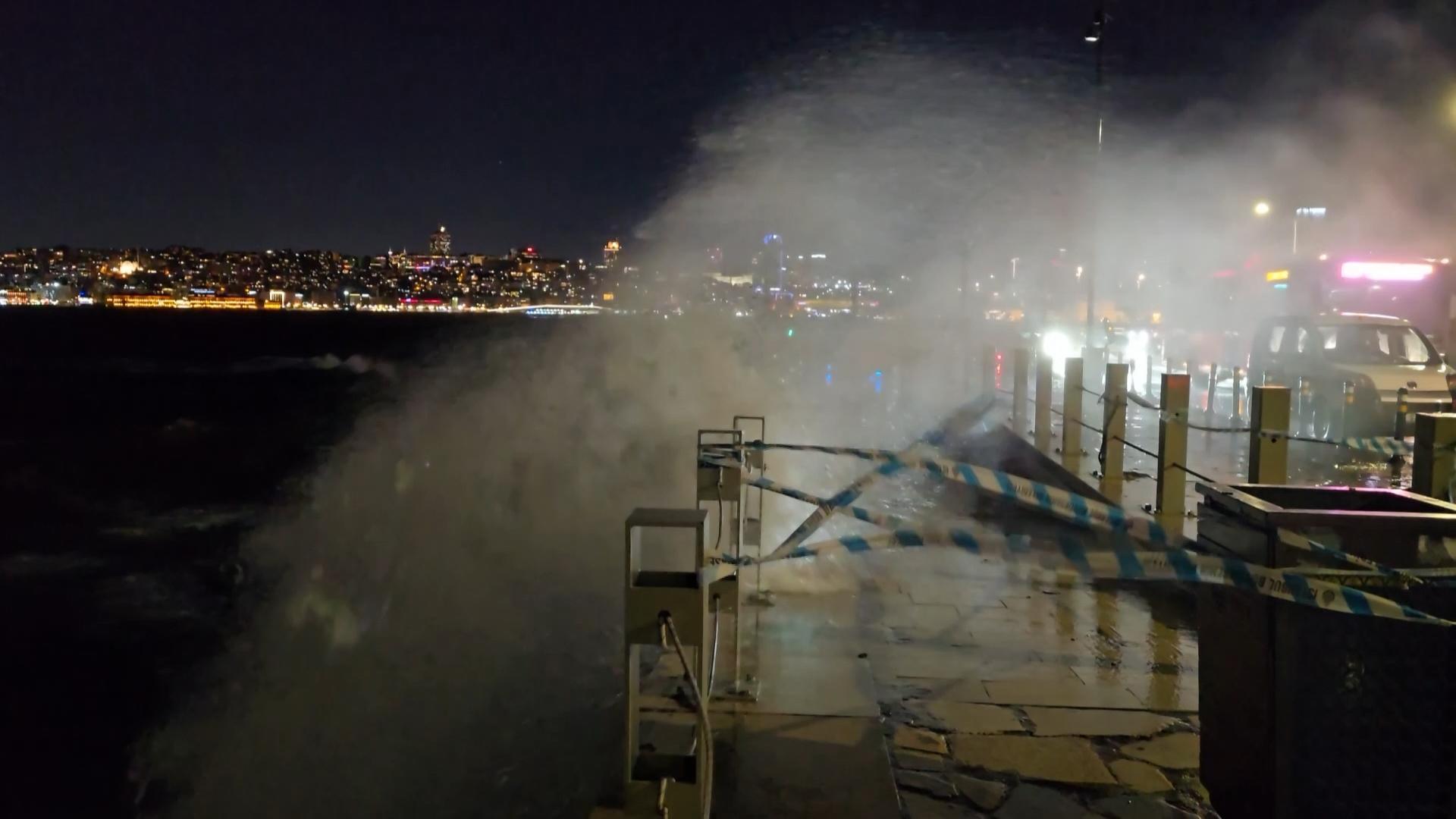 İstanbul - Üsküdar sahilinde lodos etkili oldu; dev dalgalar oluştu