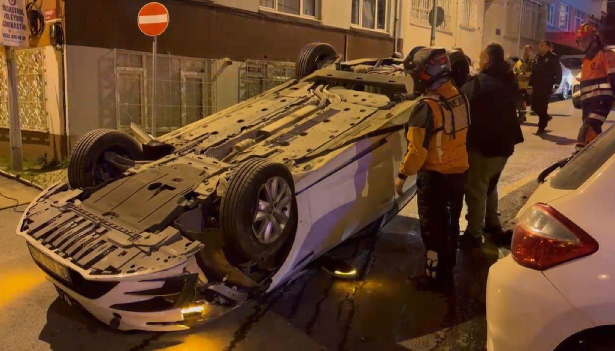 İstanbul - Üsküdar'da park halindeki 3 araca çarpan otomobil, takla attı: 1 yaralı
