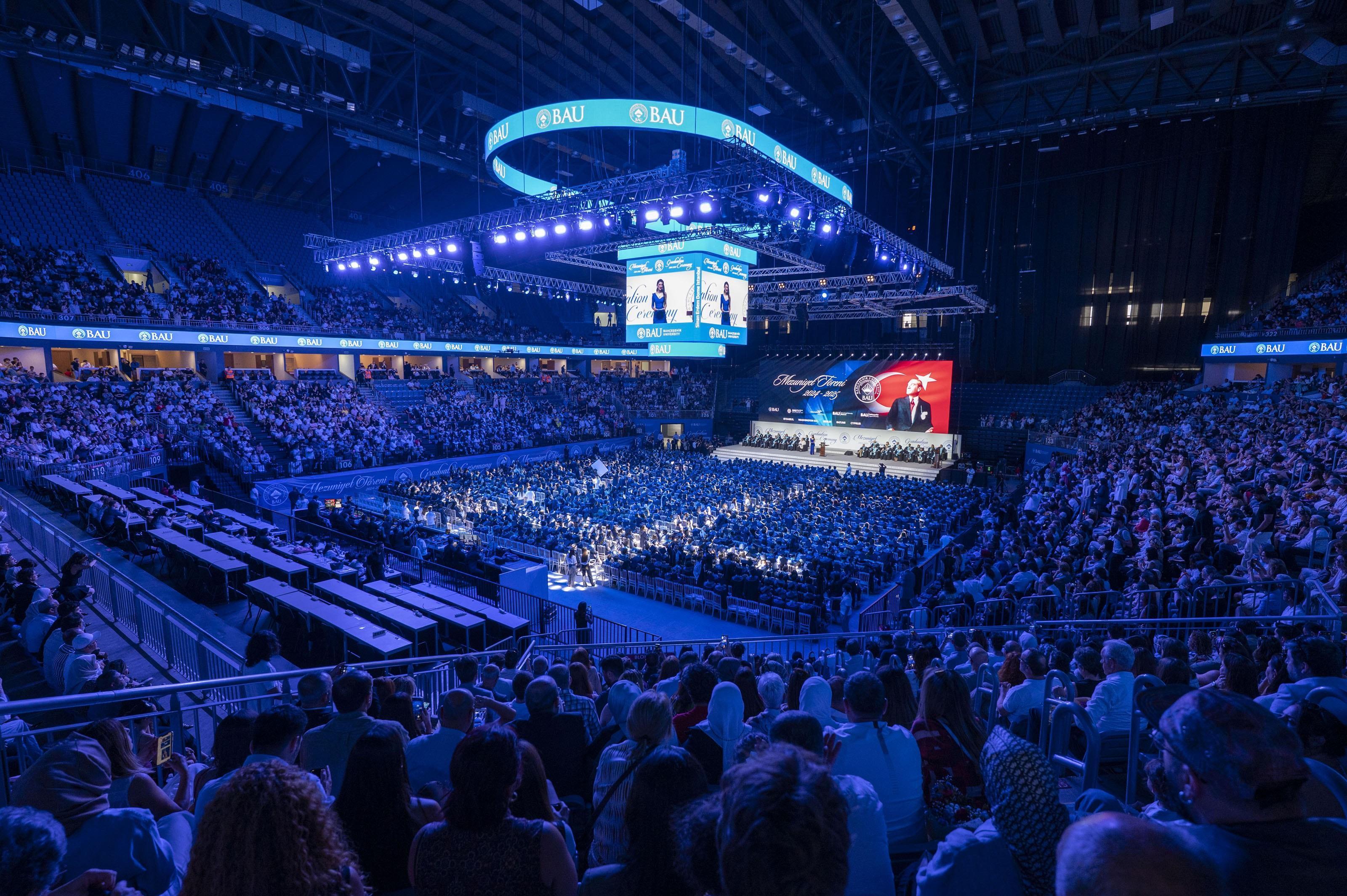 BAU Global eğitim ağı üyesi Bahçeşehir Üniversitesi’nin, 2024-2025 yılı mezuniyet töreni, Sinan Erdem Spor Salonu’nda gerçekleştirildi. Yaklaşık 6 bin öğrencinin kep atma heyecanını yaşadığı törene Bahçeşehir Üniversitesi Mütevelli Heyet ve BAU Global Başkanı Enver Yücel, BAU Mütevelli Heyet Başkan Vekili Hüseyin Yücel, BAU Rektörü Prof. Dr. Esra Hatipoğlu, fakülte dekanları, akademisyenler ve öğrencilerin yakınları katıldı.