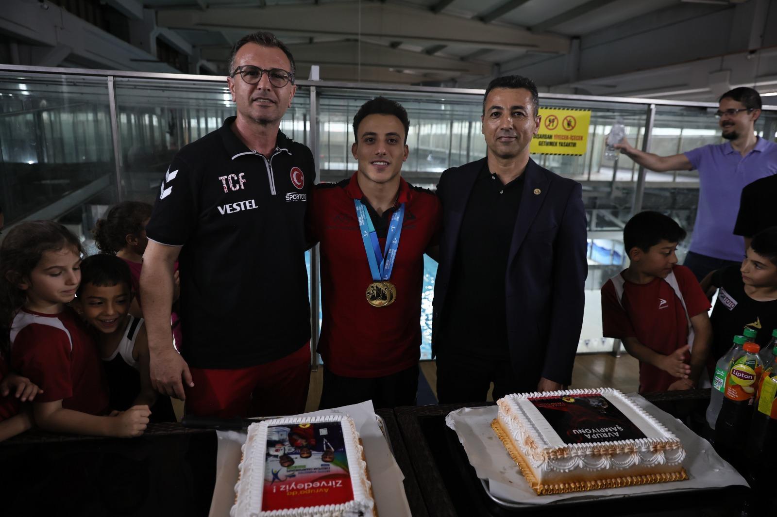 Boynunda Avrupa Şampiyonası'nda kazandığı iki altın madalya asılı olan Adem, Türkiye Jimnastik Federasyonu Başkan Vekili ve Şavkar Spor Kulübü Başkanı İsmail Göktekin ve Yılmaz Göktekin'le birlikte küçük jimnastikçilerin sorularını da yanıtladı. Bando eşliğinde küçük sporcularla halay çeken Adem, çocuklarla fotoğraf çektirip bol bol imza dağıttı. Şampiyon sporcu Yılmaz Göktekin ve İsmail Göktekin'le birlikte şampiyonluk pastasını da kesti. Mısır asıllı olan Adem Asil, 2017 yılında 18 yaşındayken İzmir'e yerleşmişti. İzmir'deki ilk döneminde antrenörü Yılmaz Göktekin'in ailesinin evinde kalan Adem Asil, Türk vatandaşlığına geçtikten sonra 1 Dünya, 4 Avrupa şampiyonluğu, Avrupa Şampiyonası'nda 3 gümüş, 4 bronz madalya kazanıp ülkemizi gururlandırdı. Adem, Avrupa Şampiyonası'nda üst üste iki kez çifte altın kazanan ilk sporcumuz oldu.
