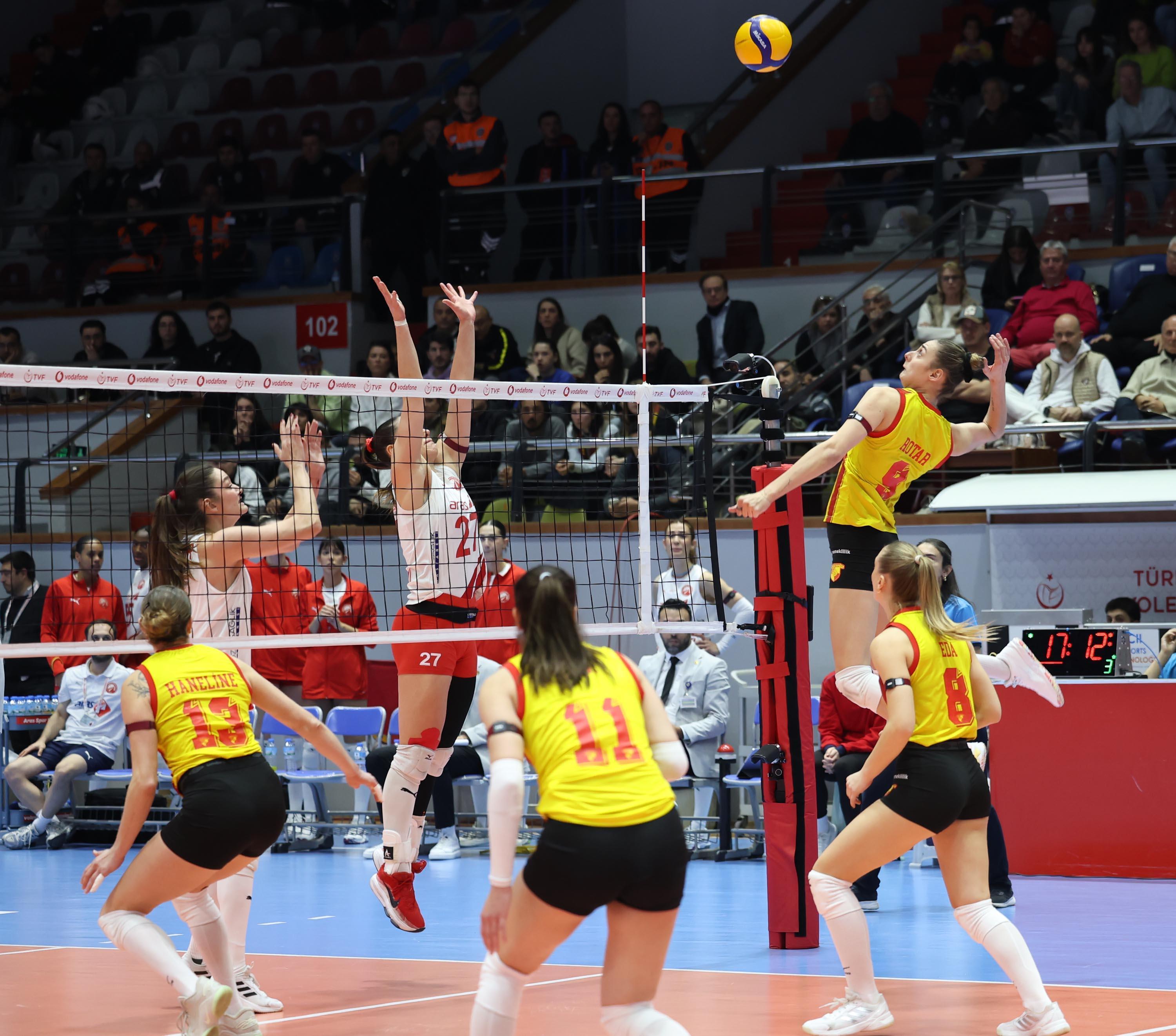 İZMİR, (DHA)- SULTANLAR Ligi’nde iki İzmir ekibinin karşı karşıya geldiği 16’ncı hafta mücadelesinde Aras Kargo evinde Göztepe’yi 3-2 mağlup etti. İzmir Atatürk Voleybol Salonu’nda oynanan müsabakanın setleri 25-14, 25-20, 18-25, 19-25 ve 15-11’lik skorlarla sona erdi. Bu sonuçla Aras Kargo ligdeki 9’uncu galibiyetini elde ederken, Göztepe 12’nci yenilgisini aldı.