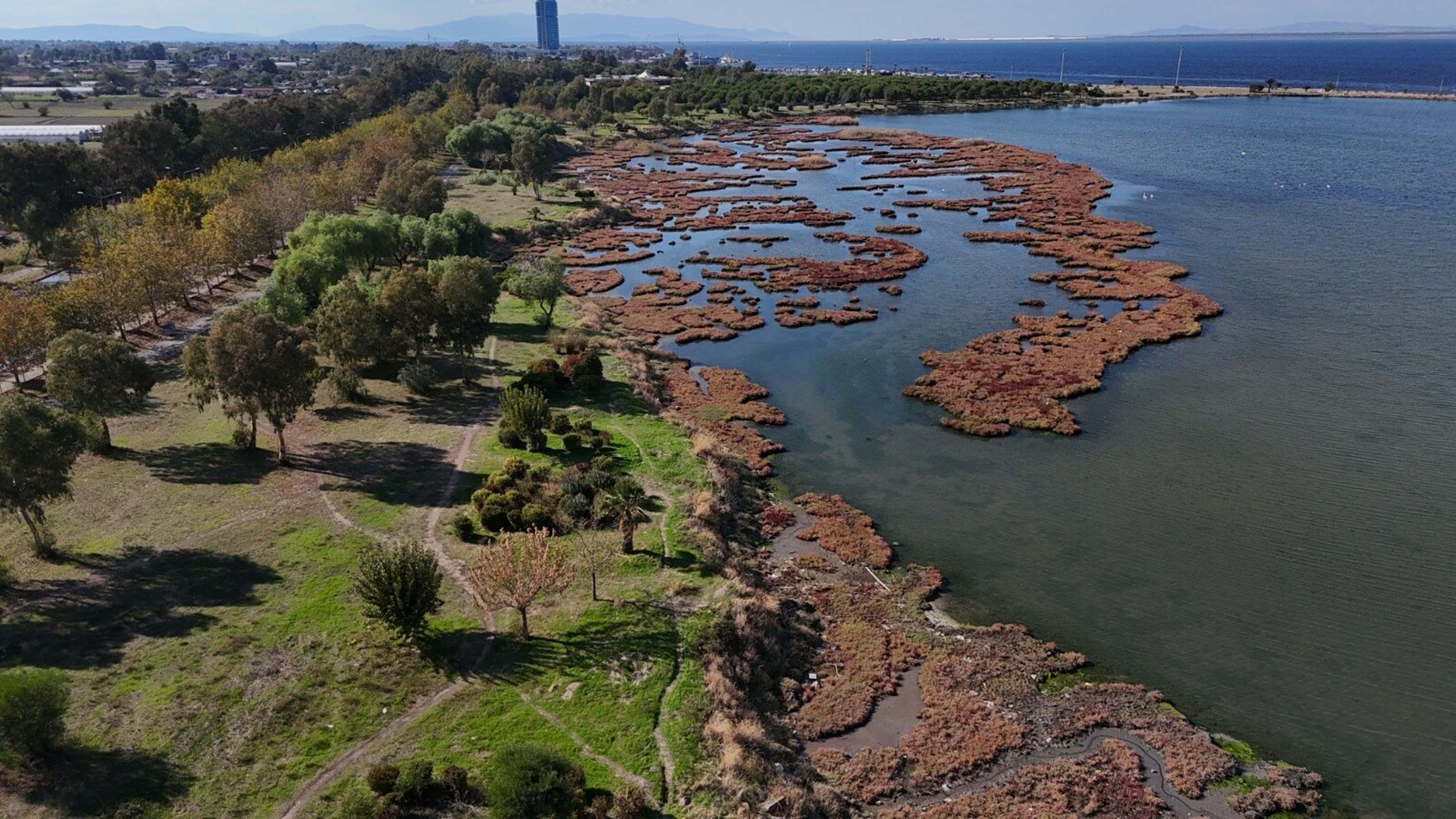 Tepeli pelikan, ak pelikan, karabatak, balıkçıl, ördek, sakar meke, yalıçapkını, çulluk başta olmak üzere birçok kuş türüne ev sahipliği yapan Çakalburnu Lagünü ve yanında yer alan İnciraltı Kent Orman’ında sonbahar manzaraları yaşanıyor. Hava sıcaklıklarının mevsim normallerinde seyretmesiyle lagündeki flamingolar görsel şölen oluşturdu. İnciraltı Kent Ormanı’ndaki ağaçlarındaki yaprakların bir kısmının döküldüğü bir kısmının da sonbaharın rengi olarak bilinen kahverengiye dönüştüğü gözlendi. Lagün ve ormandaki sonbahar manzarası dron ile havadan görüntülendi. (DHA)