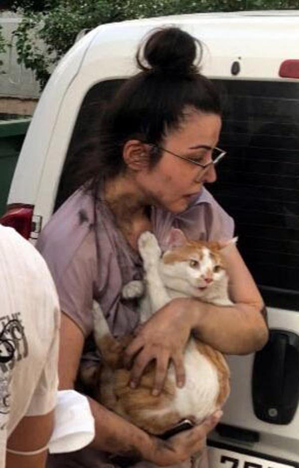 Yangında alevler arasında kalan yatalak hasta ile kediyi itfaiye kurtardı