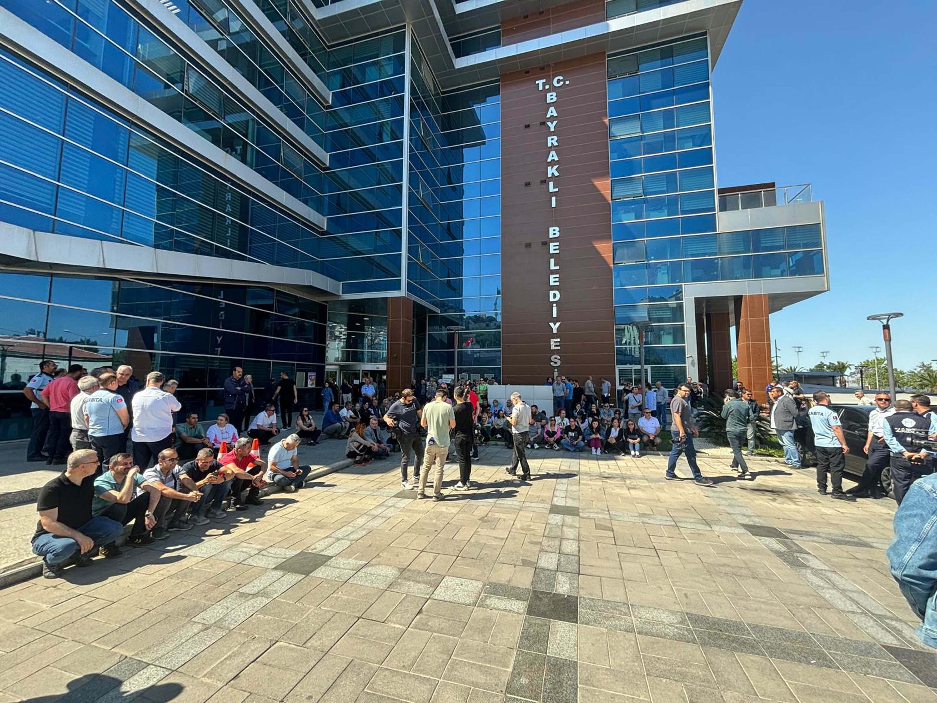 Bayraklı Belediyesi'nde memurlar, iş bırakma eylemi yaptı
