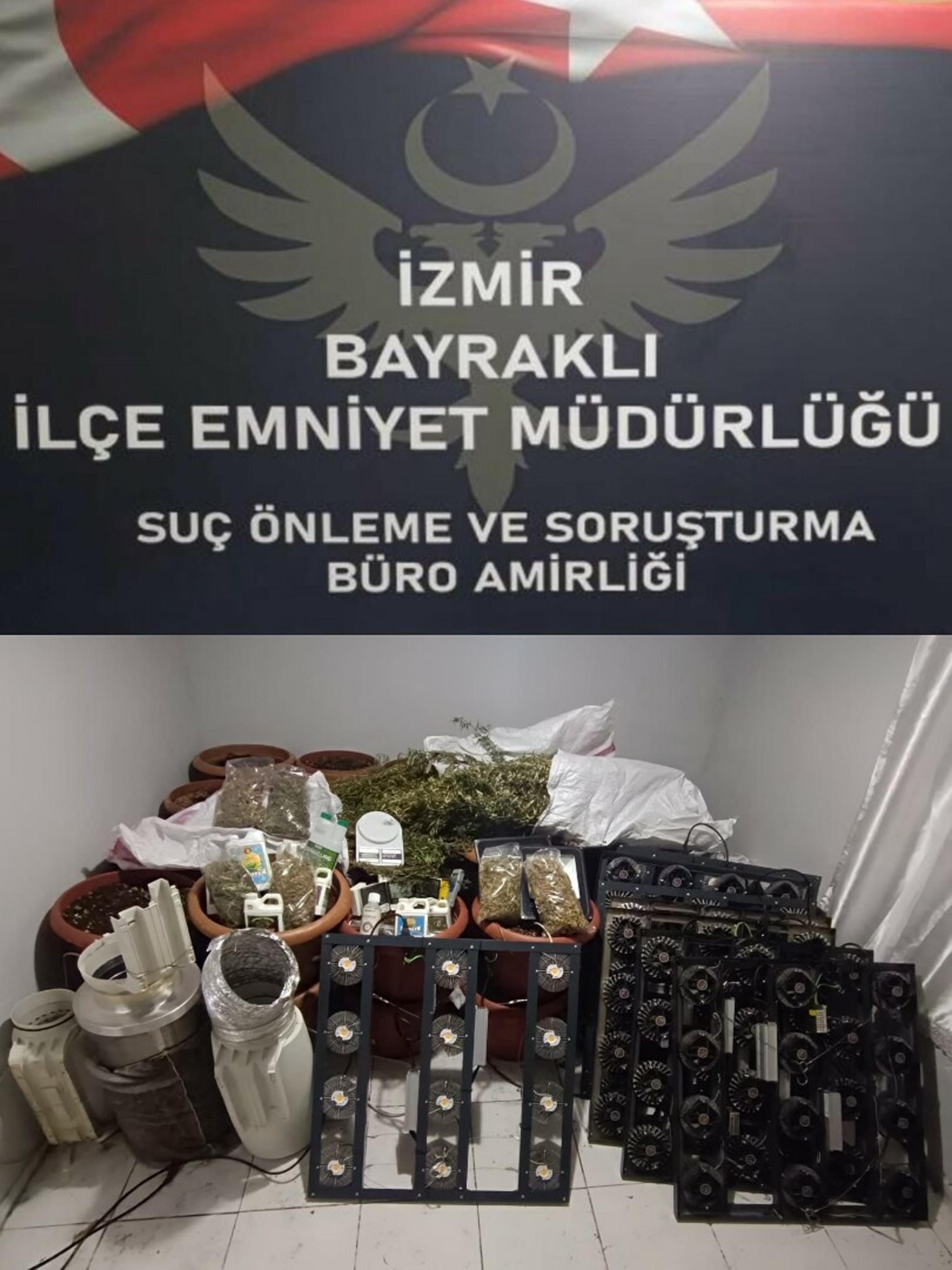 Bayraklı Suç önleme ve Soruşturma Büro Amirliği ekipleri, vatandaşlardan uyuşturucu ticaretine dair ihbar aldı. Ekipler, aldıkları İhbar üzerine Onur Mahallesi'nde operasyon düzenlediler. Düzenlenen operasyonda, 4.5 kilogram esrar, 1 hassas terazi, madde imalatında kullanılan çeşitli cihaz ve kimyasal ilaçlar ve bir ruhsatsız tabanca ele geçirildi. Ele geçirilen malzemelerle beraber İ.E. (38) ve F.Ç. (28) isimli şüpheliler gözaltına alındı. Şüphelilerin adli işlemlerinin devam ettiği öğrenildi. (DHA)