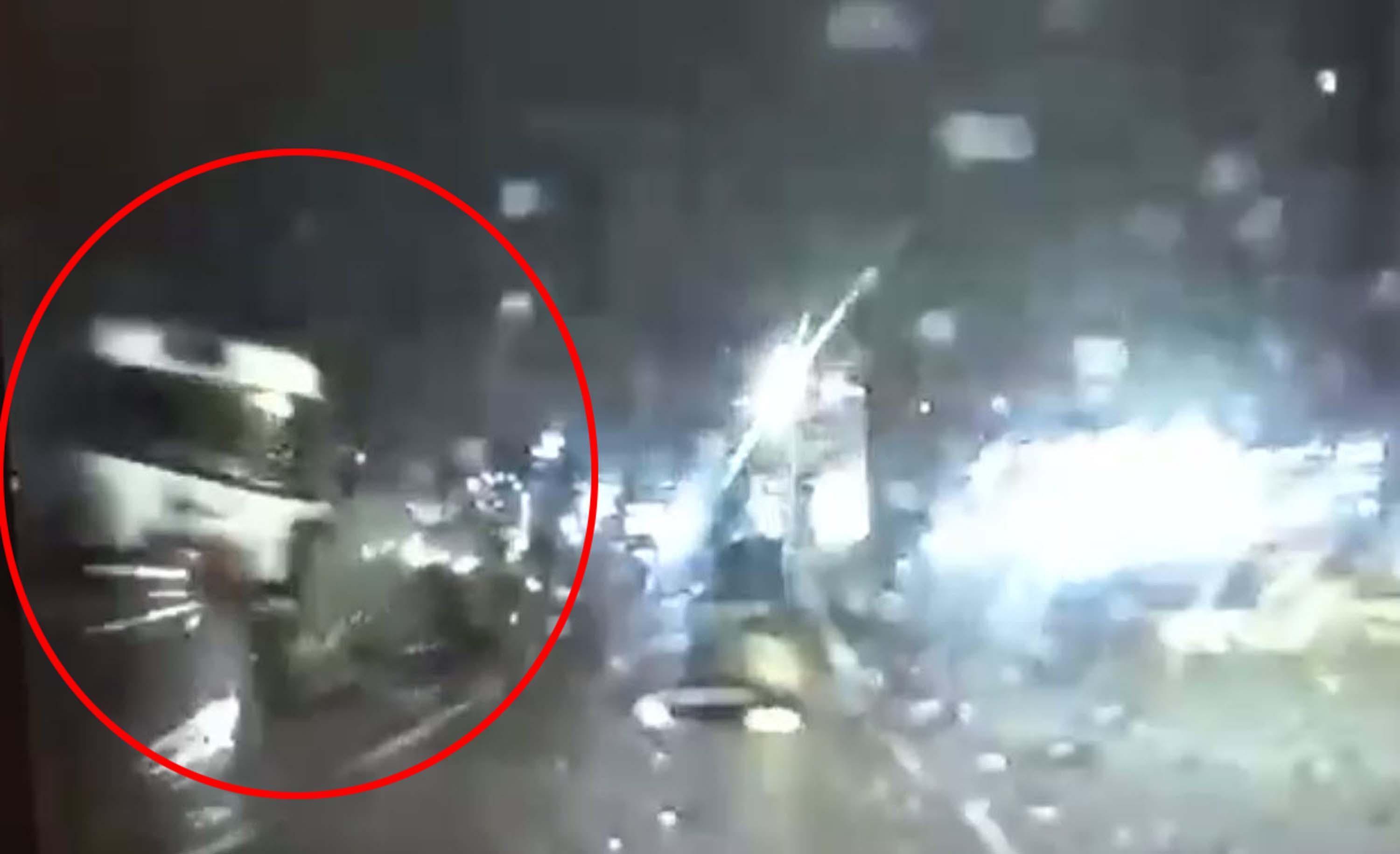 Halil İbrahim KARABIYIK/İZMİR, (DHA)- İZMİR'in Bayraklı ilçesinde mazot yüklü tankerin bariyere çarpıp karşı şeride geçerek taksiye çarptığı kazanın araç kamerası görüntüleri ortaya çıktı.