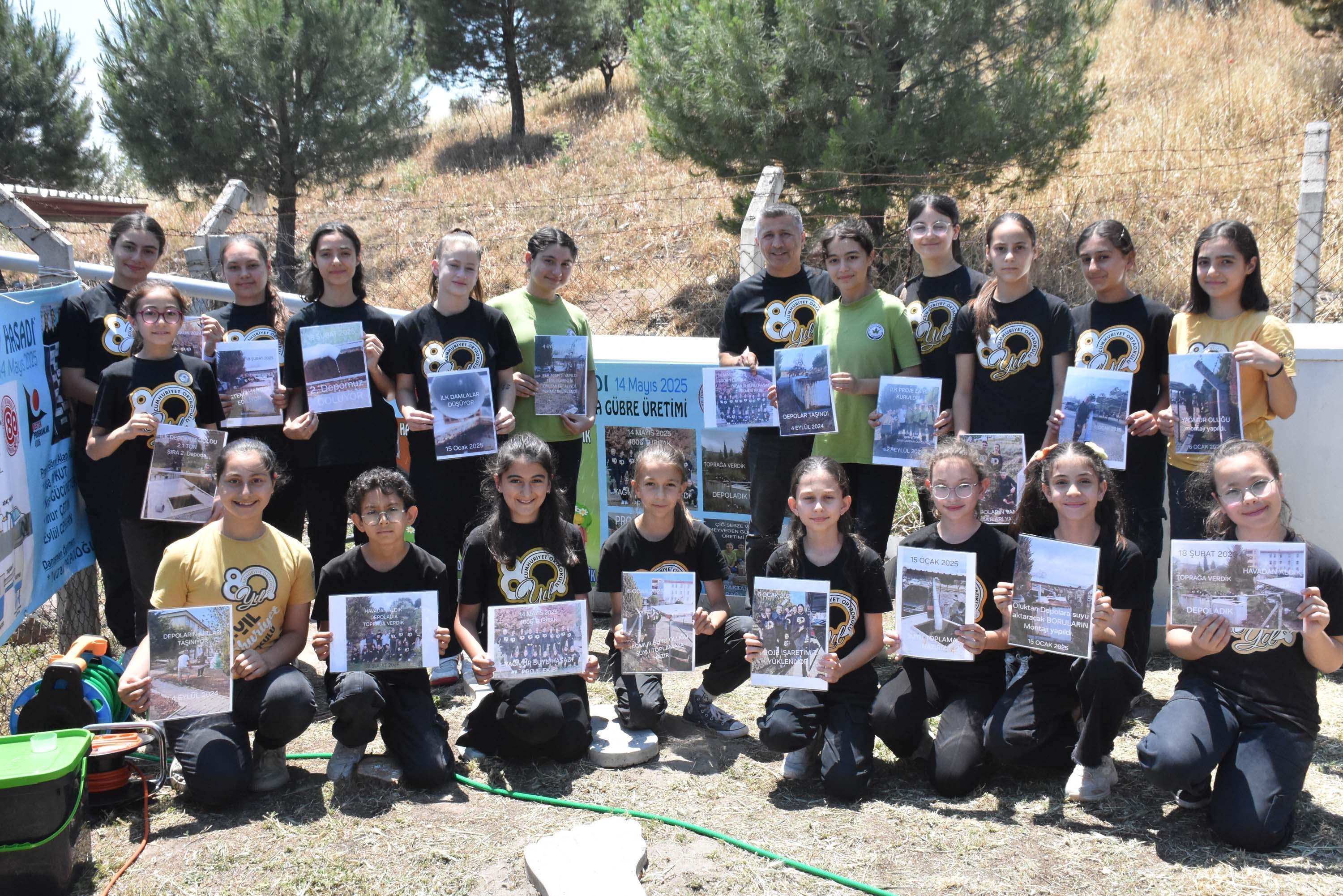 Meyve ve sebzelerden gübre üretimi sürecini anlatan 5'inci sınıf öğrencisi Eylül Ceylan (11) ise "Okulda gübre üretiyoruz. Bir kovanın içinde yağ hariç bütün mutfak atıklarını biriktiriyoruz, sonra üstüne kepek atıyoruz ve beklemeye alıyoruz. 2 hafta sonra gübreye dönüşüyor. Sıvı gübreyi süzüyoruz ve 5 litre suyla karıştırıyoruz. Bu suyla ağaçlarımızı suladığımızda daha gür, sağlıklı ve güzel büyüyorlar" dedi.