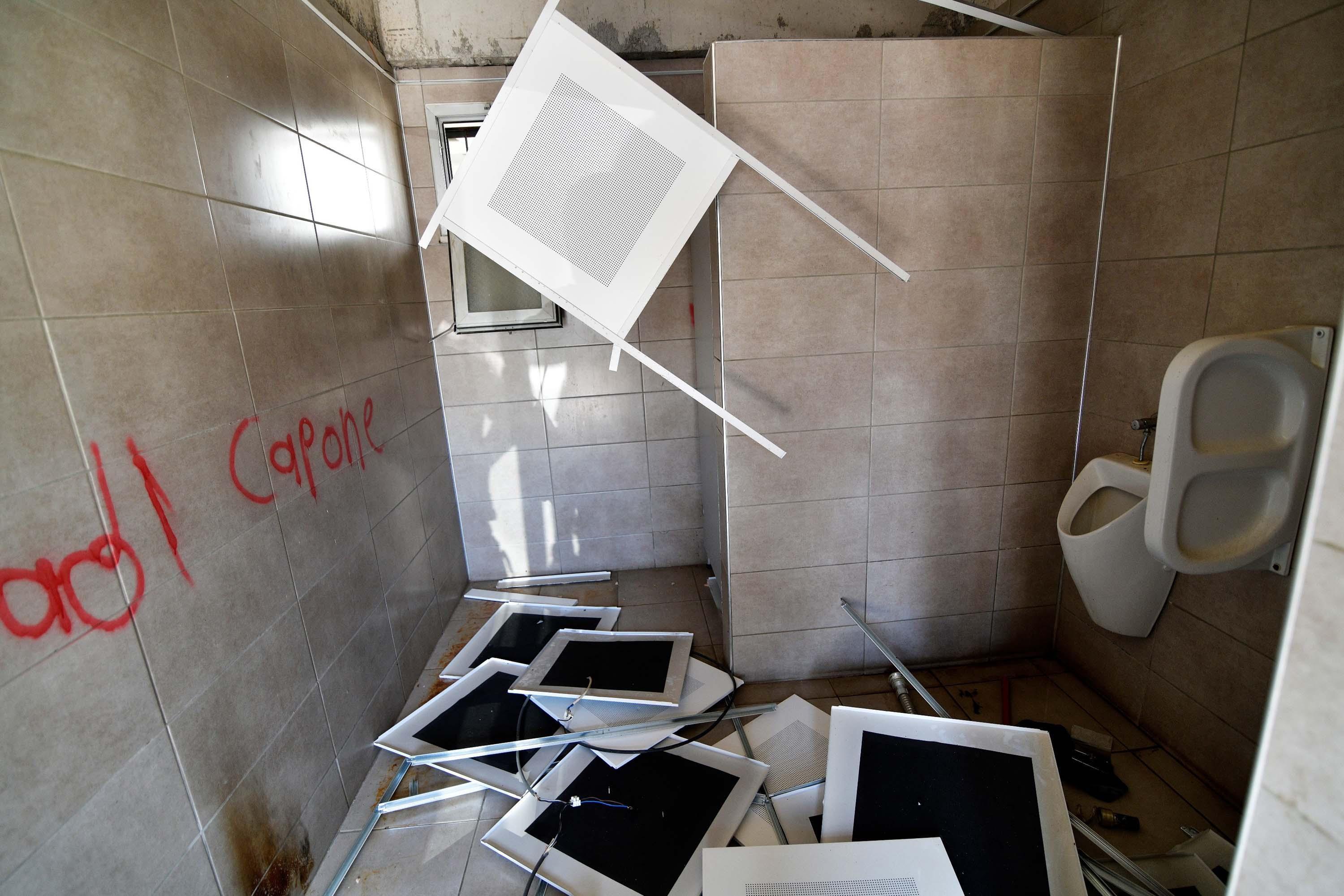 İZMİR,(DHA)-İZMİR'in Bornova ilçesi İnönü Mahallesi'ndeki pazar yeri kimliği belirsiz kişiler tarafından tahrip edildi; camlar kırıldı, tavan kaplamaları söküldü ve duvarlara yazılar yazıldı. Bornova Belediye Başkanı Ömer Eşki, şüphelilerin yakalanması için çalışma başlattıklarını dile getirdi.