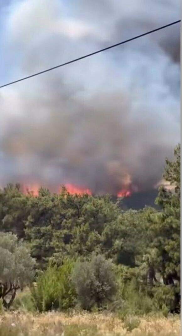 Gökdere Mahallesi'ndeki ormanda, saat 12.30 sıralarında orman yangını çıktı. İhbarla bölgeye İzmir Orman Bölge Müdürlüğü'ne bağlı 4 uçak, 6 helikopter, 16 arazöz, 4 su ikmal ve 3 dozer sevk edildi. Alevlere havadan ve karadan müdahale sürüyor. (DHA)