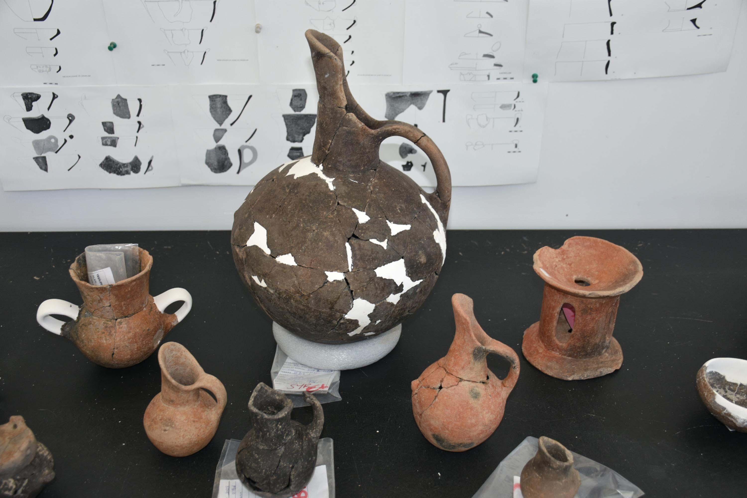 "Elde yapılmış çanak çömlekler içinde farklı boyutta da olsa testi ve testicik türündeki eserlere rastladık. Testilerin hayvanı sembolize eden gaga ağız yani ördek formunda yapılmış ağız kısımları dikkati çekmektedir. Bunların çoğu sıvı kabı. Bunun dışında 'tankart' dediğimiz iki kuplu maşrapa tarzında bir kap keşfettik. Kapların içinde en dikkat çeken buluntu ritüel kabıdır. İki ayrı kapı birleştirip tek bir kap şeklinde yapmışlar. Yemek içmek gibi değil törenlerde özel sıvıları dökmek için şekillendirdikleri kadın ve erkeği temsil edebileceğini düşündüğümüz bir kap. Üzerindeki desen çizgilerin içi beyaz boya ile doldurulmuş. Aynı zamanda bu eserlerde tekstilin de nasıl yansıdığını görebiliyoruz." (DHA)