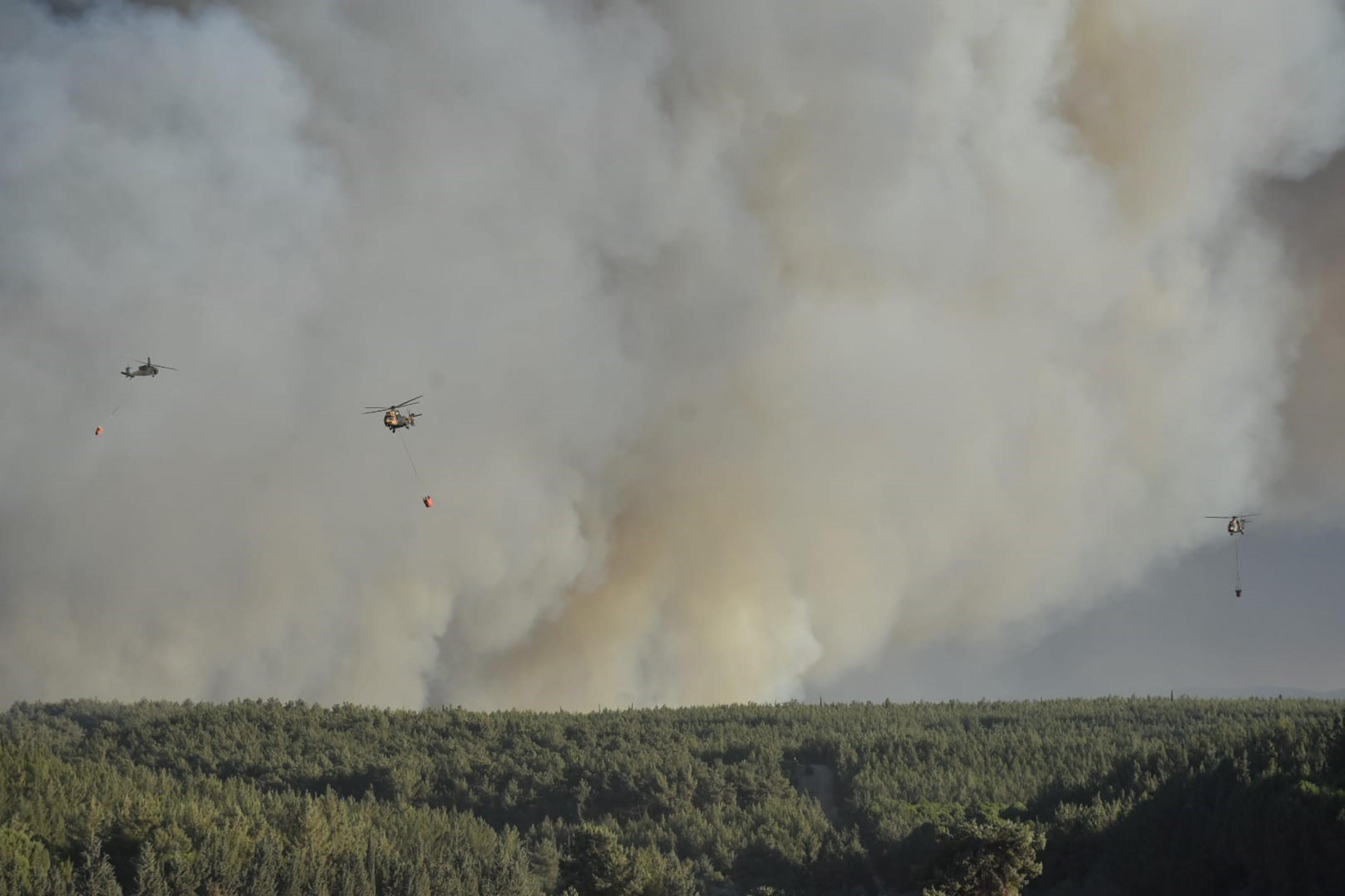Bu arada yapılan incelemede bölgede spiral makinesiyle kesim yaparken yangına neden olduğu gerekçesiyle 2 şüpheli gözaltına alındı. Yangına havadan ve karadan müdahale sürüyor.