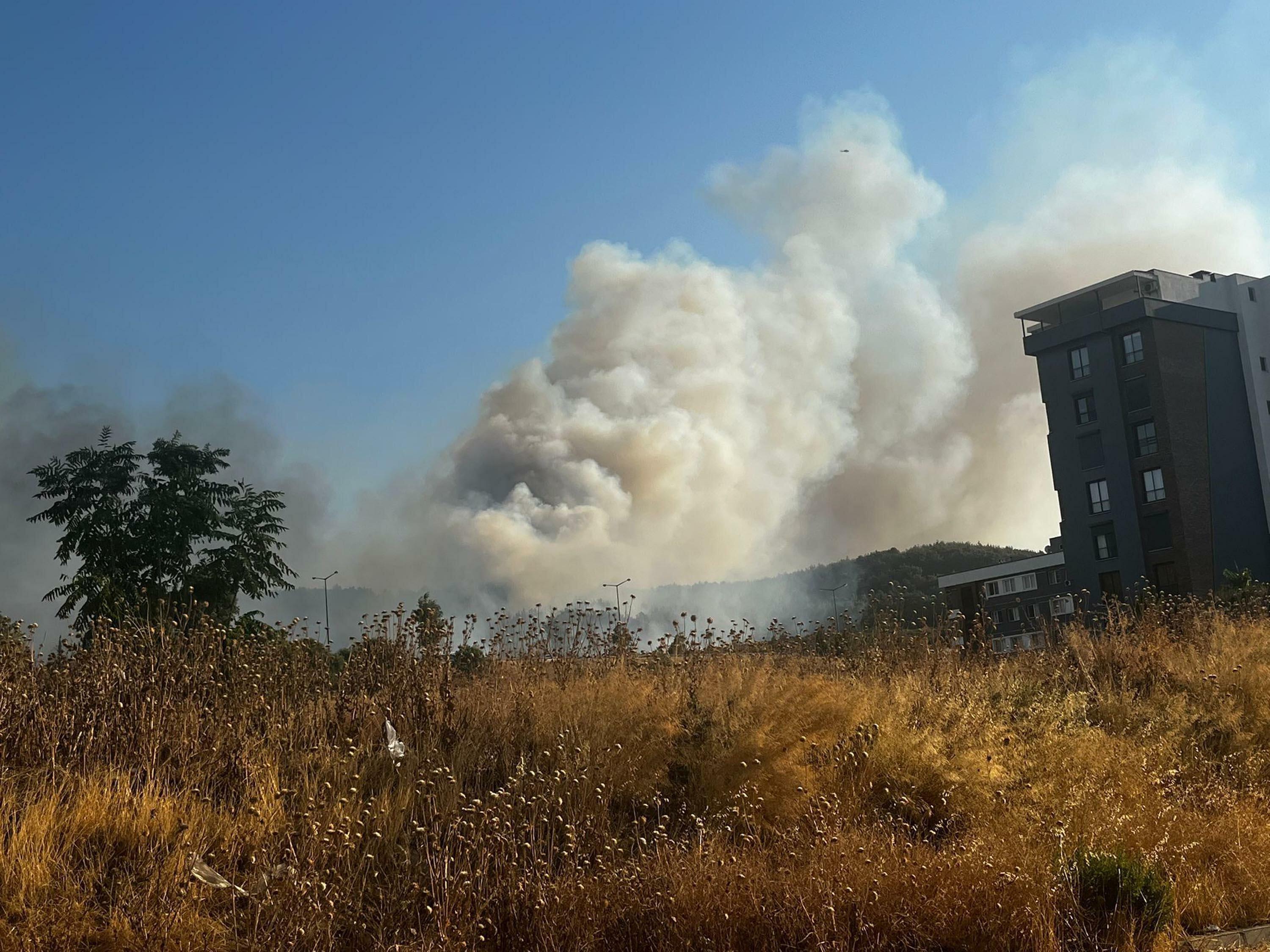 Tolga TAHÇI/ İZMİR, (DHA)- İZMİR’in Buca ilçesinde bir minibüste çıkan yangında alevler ormana sıçradı. Yangına havadan ve karadan müdahale sürüyor.
